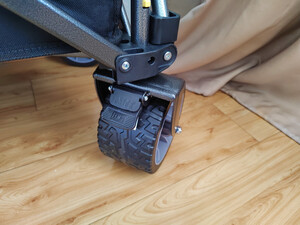 收纳起来后,两个前轮是歪的,但是两个后轮就没问题,本来以为展开后就好了,但是展开后推行,四个轮子不一样平,味道也很大,说不上来是哪种刺鼻的味道,这期间事情多忘了退货,已经过了退货时间,也退不了,这个牌子卖的还比其他的贵,很一般!