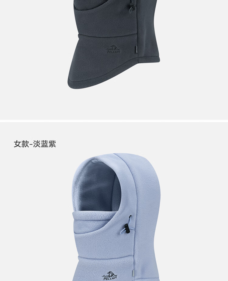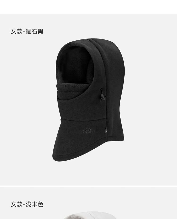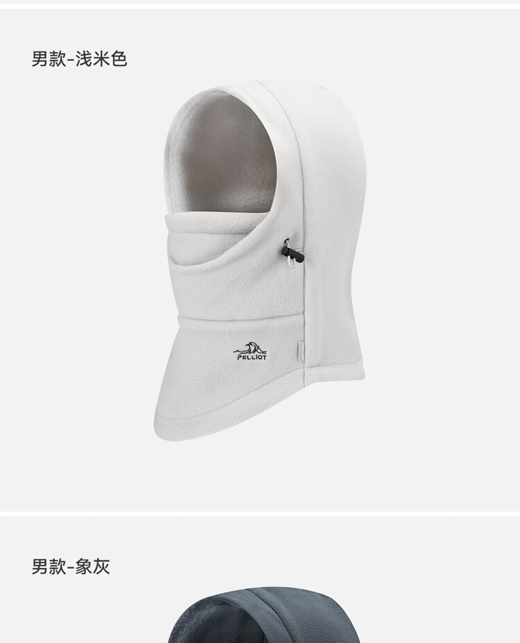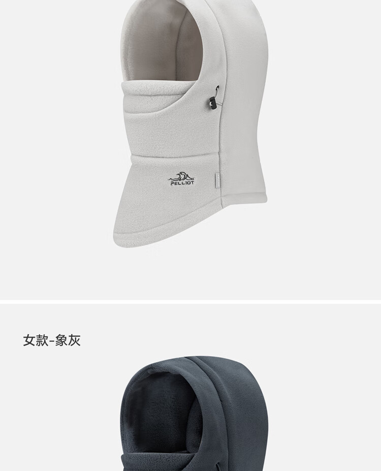 伯希和(Pelliot)[P系列]户外抓绒冷帽登山滑雪防风防寒帽子男女面罩165034026女灰