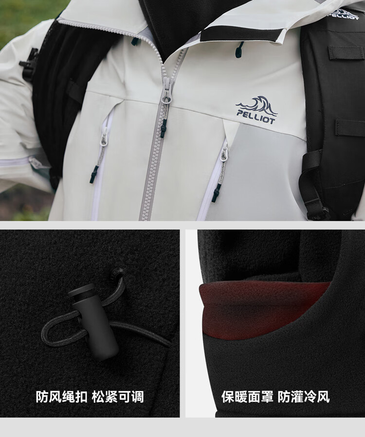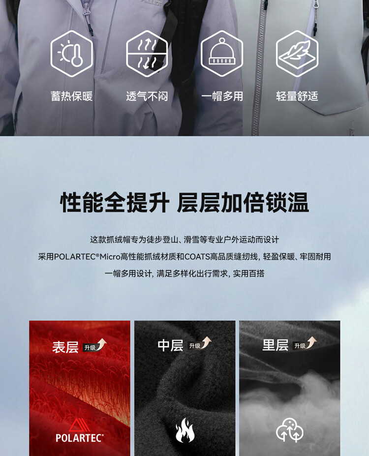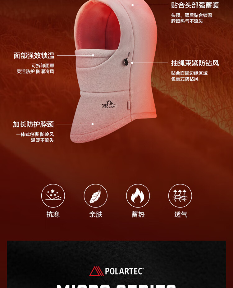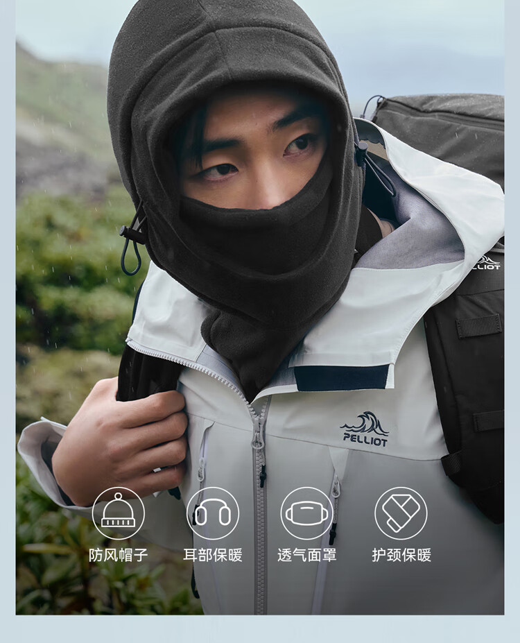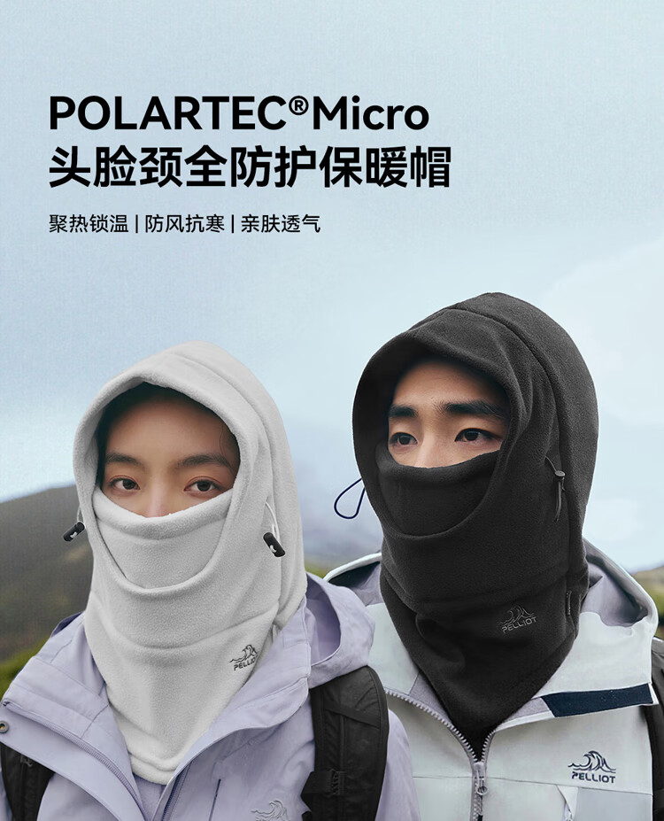 伯希和(Pelliot)[P系列]户外抓绒冷帽登山滑雪防风防寒帽子男女面罩165034026女灰