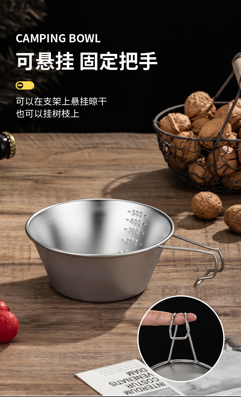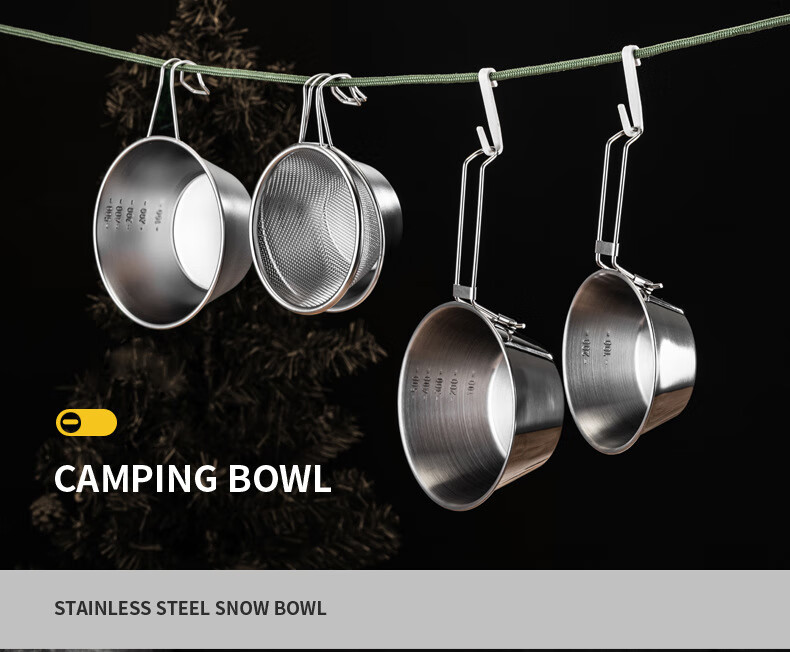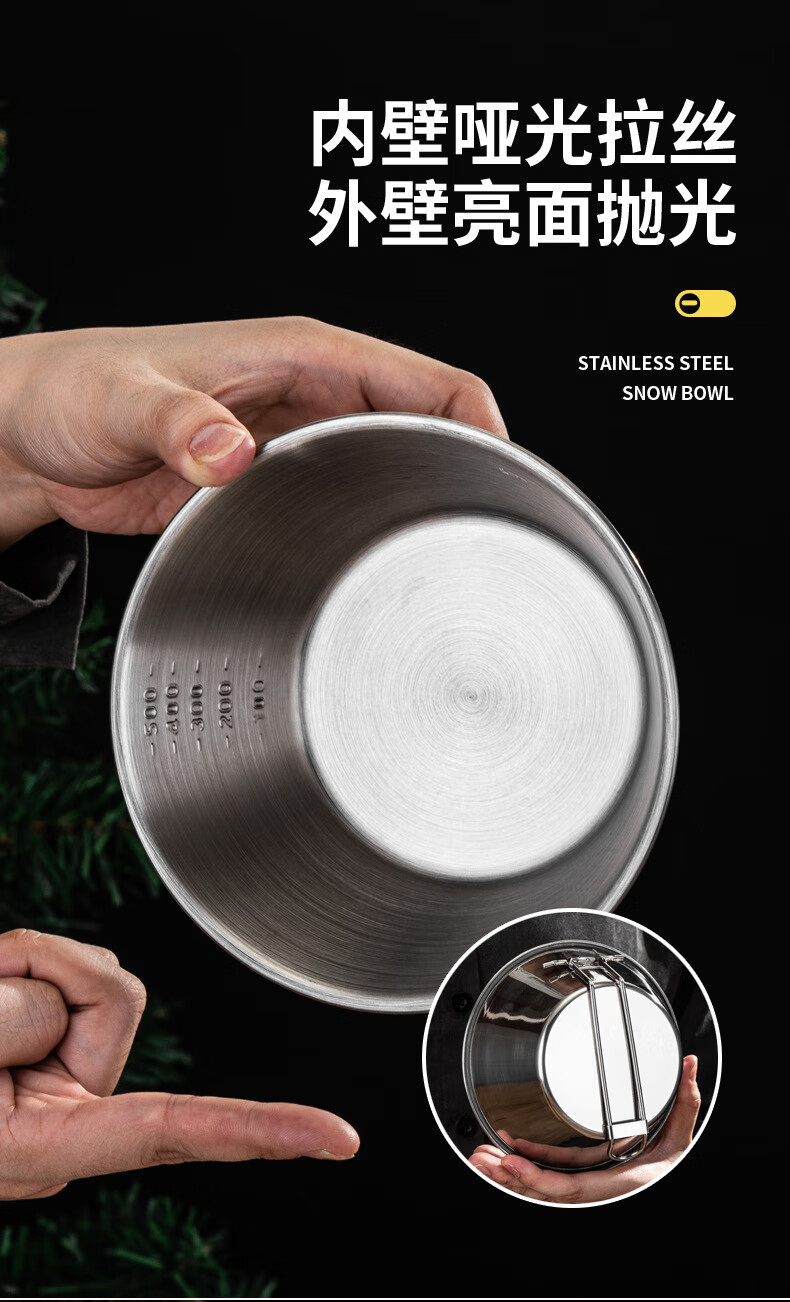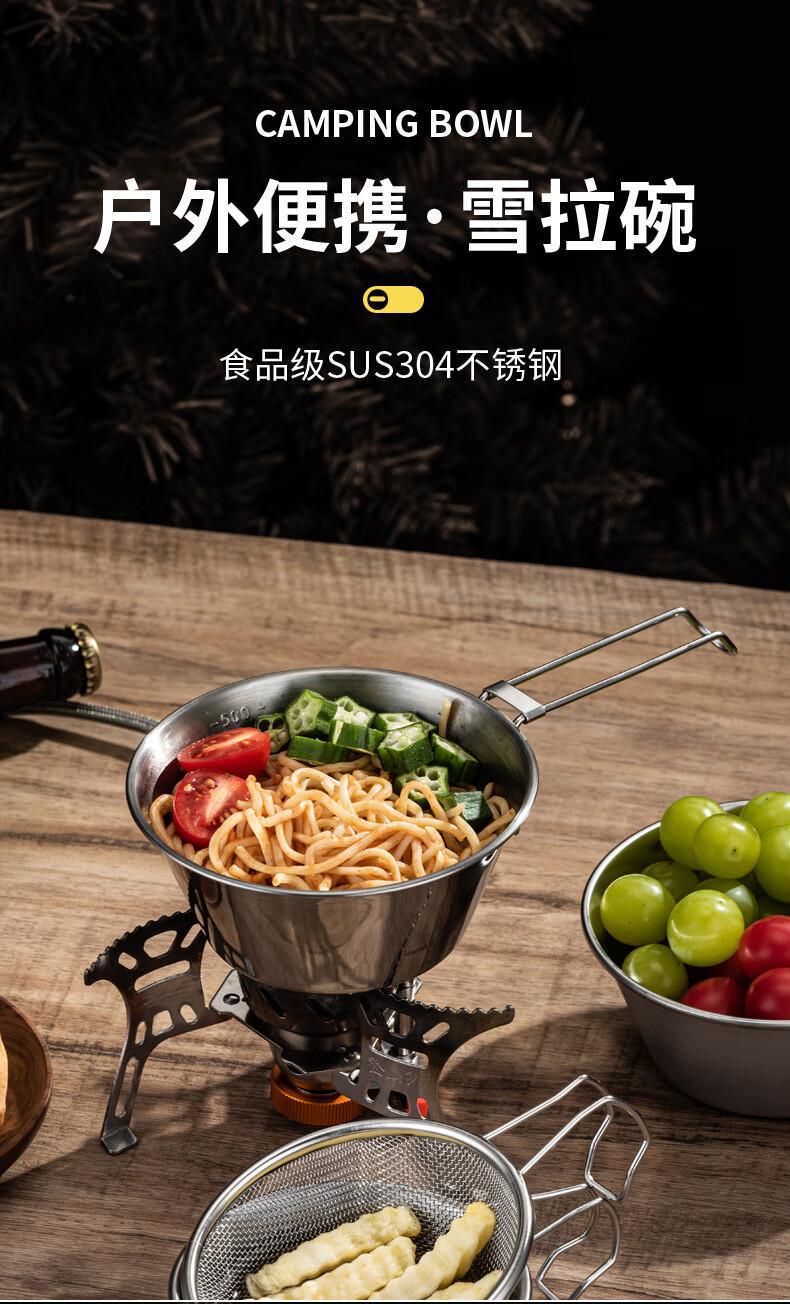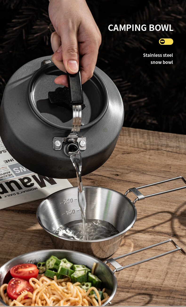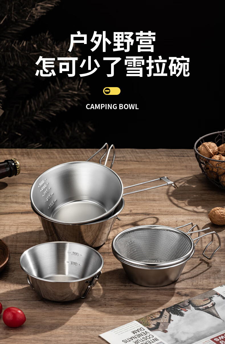 爱加芬露营餐具套装304不锈钢野营碗手柄可折叠碗带刻度户外便携 304雪拉碗5件套+收纳袋