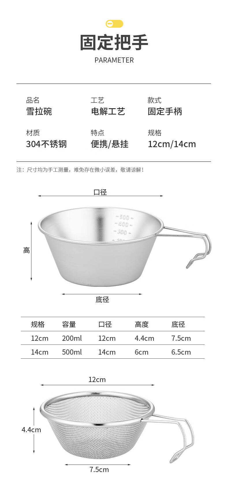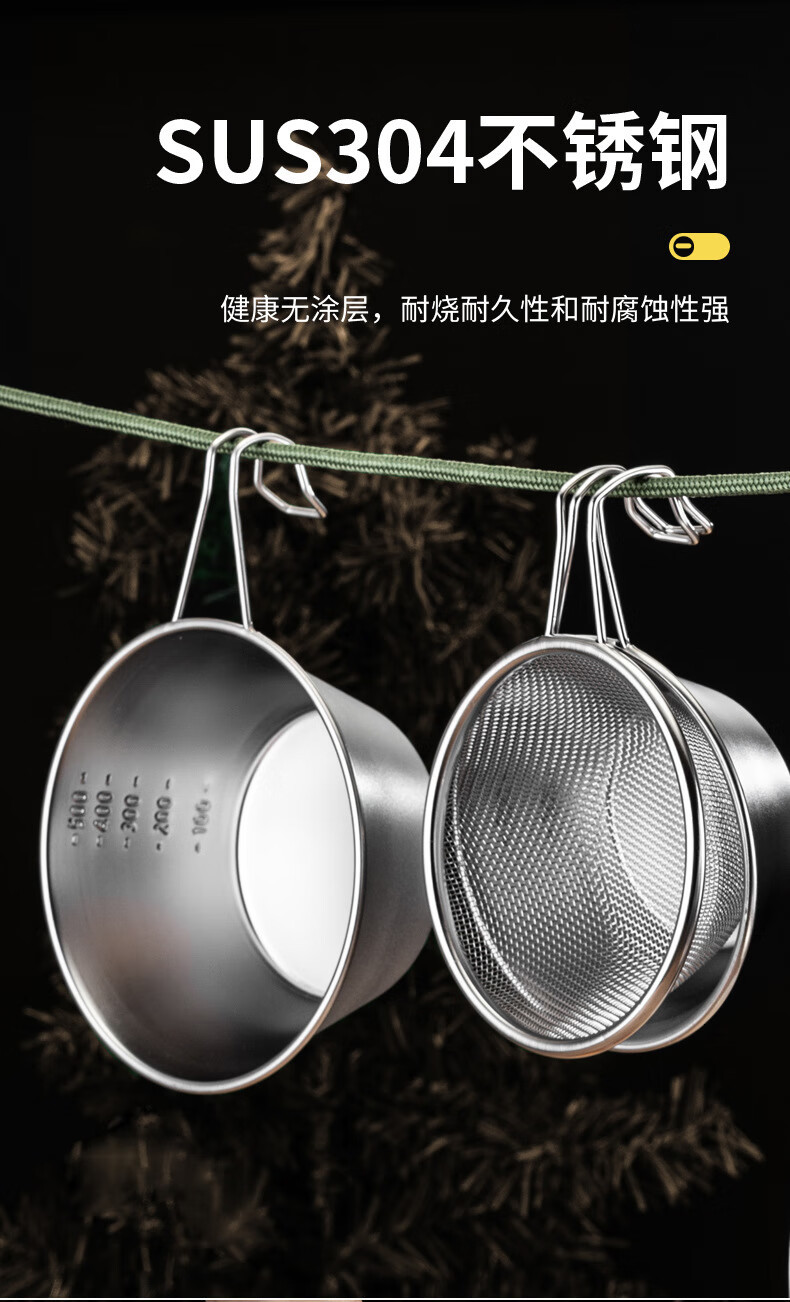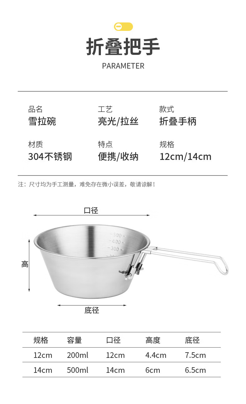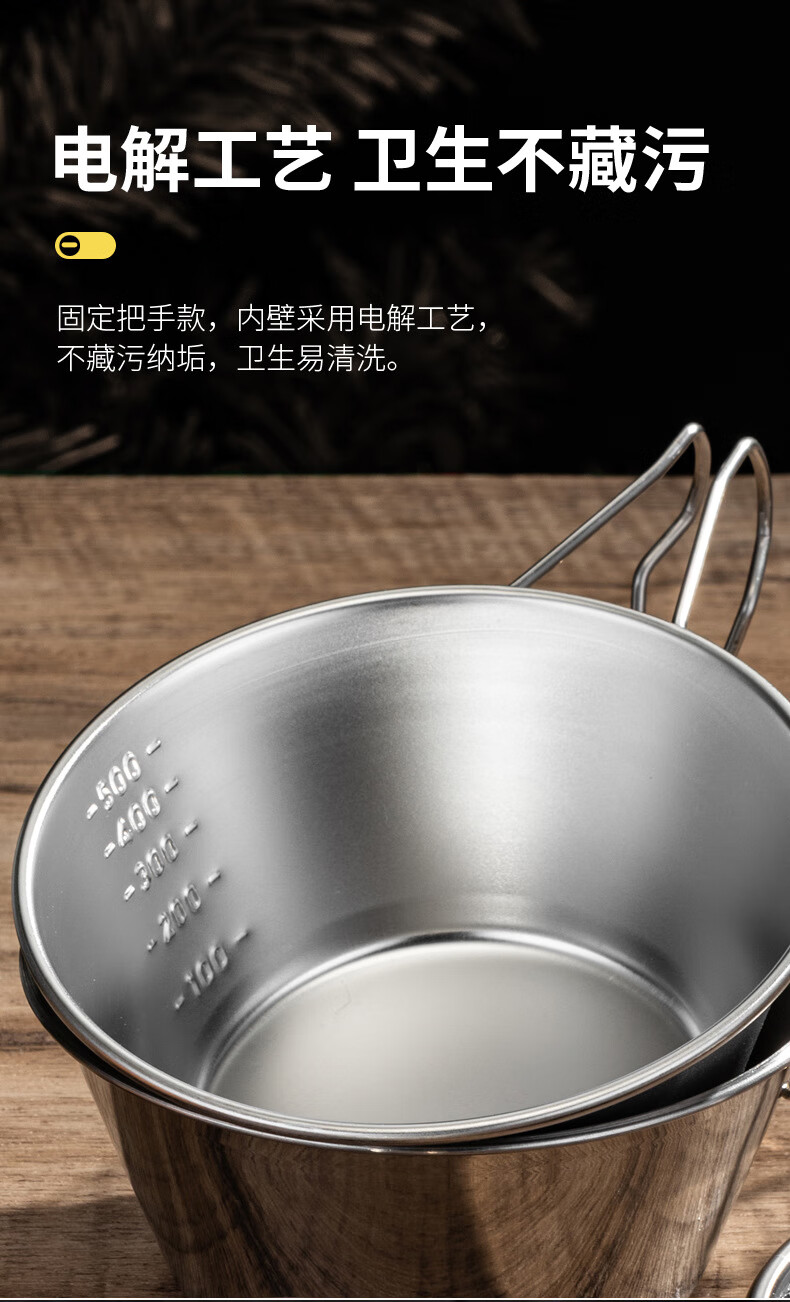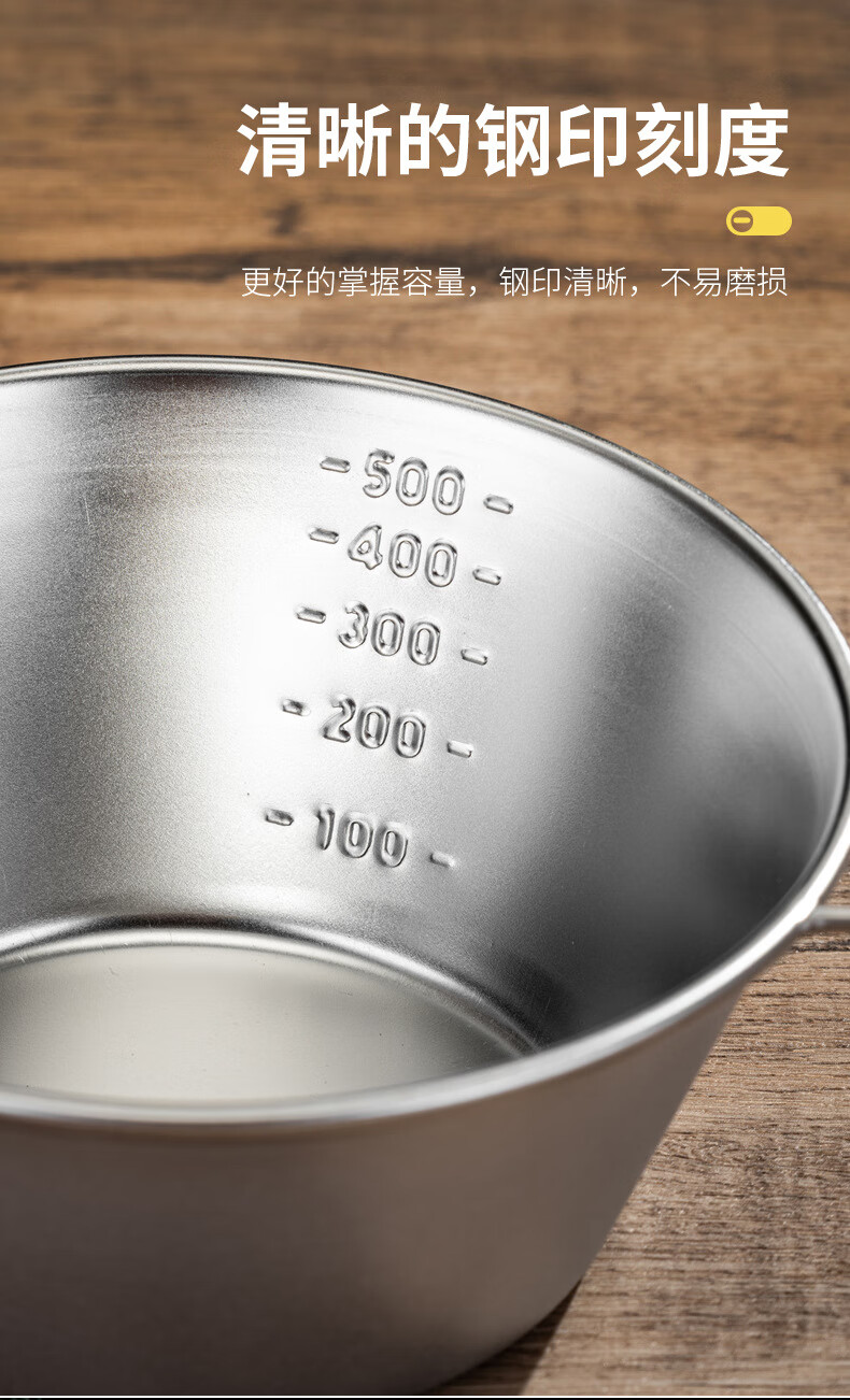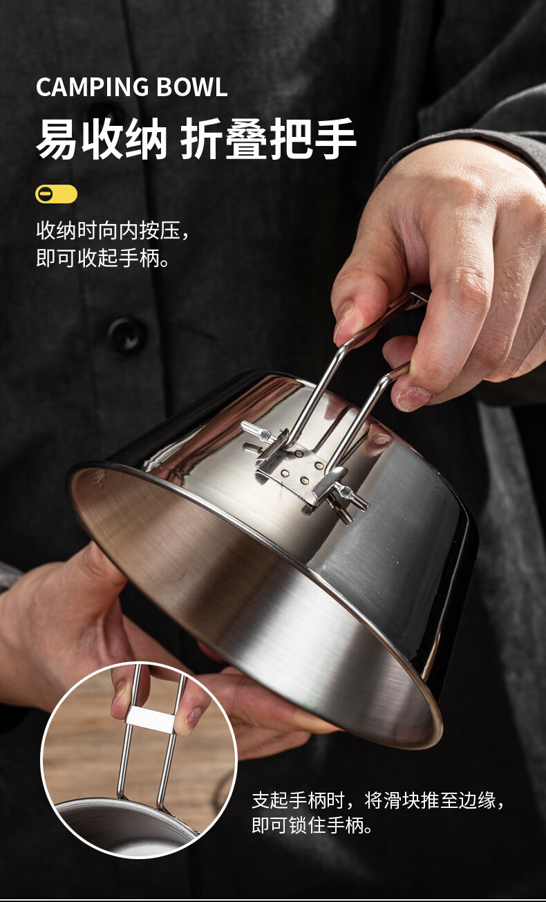 爱加芬露营餐具套装304不锈钢野营碗手柄可折叠碗带刻度户外便携 304雪拉碗5件套+收纳袋
