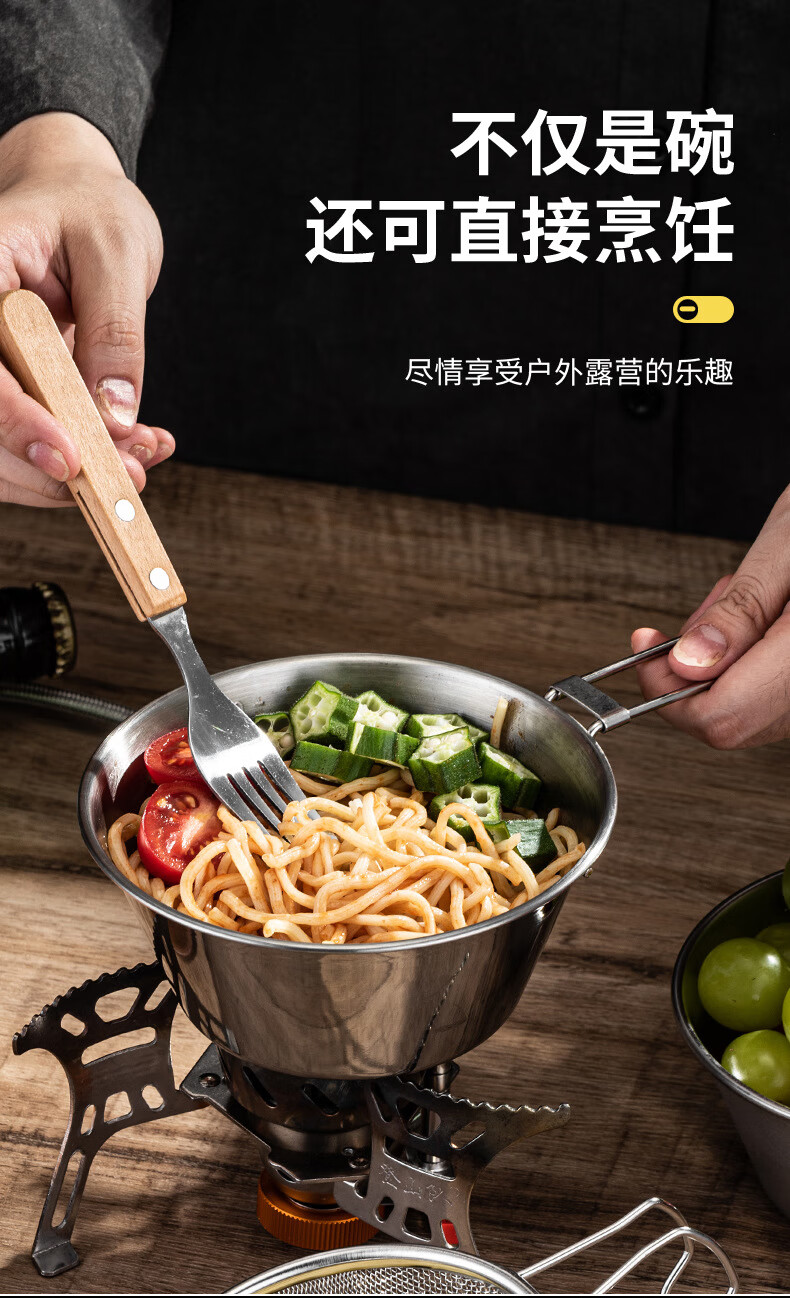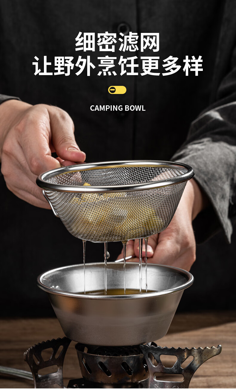 kommot牧彻户外露营餐具便携食品级不锈钢碗套装防烫雪拉碗野餐烧烤炊具 大号-600ml【4个装】+收纳包