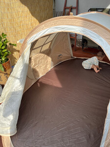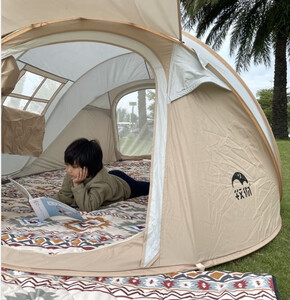 帐篷到货很快,速开,很方便,空间比想象的要大很多,内部坐4个人完全没问题。收纳看了视频也学会了,就准备周末带出去亲近大自然了,可惜本周有雨,要再等等了