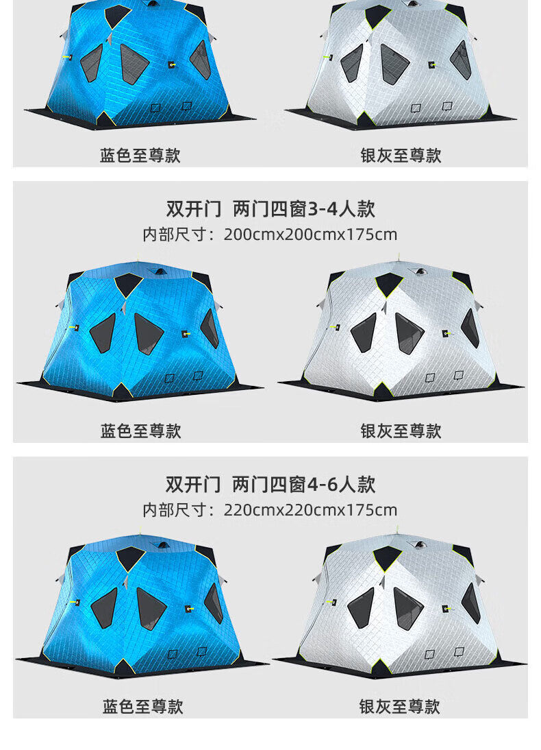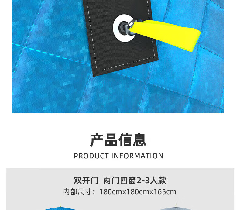 卡莱普瓦超大保暖夹棉加厚冬季帐篷户外冰钓防寒防雨钓鱼帐篷露营装备 蓝色加厚夹棉帐篷 2-3人款