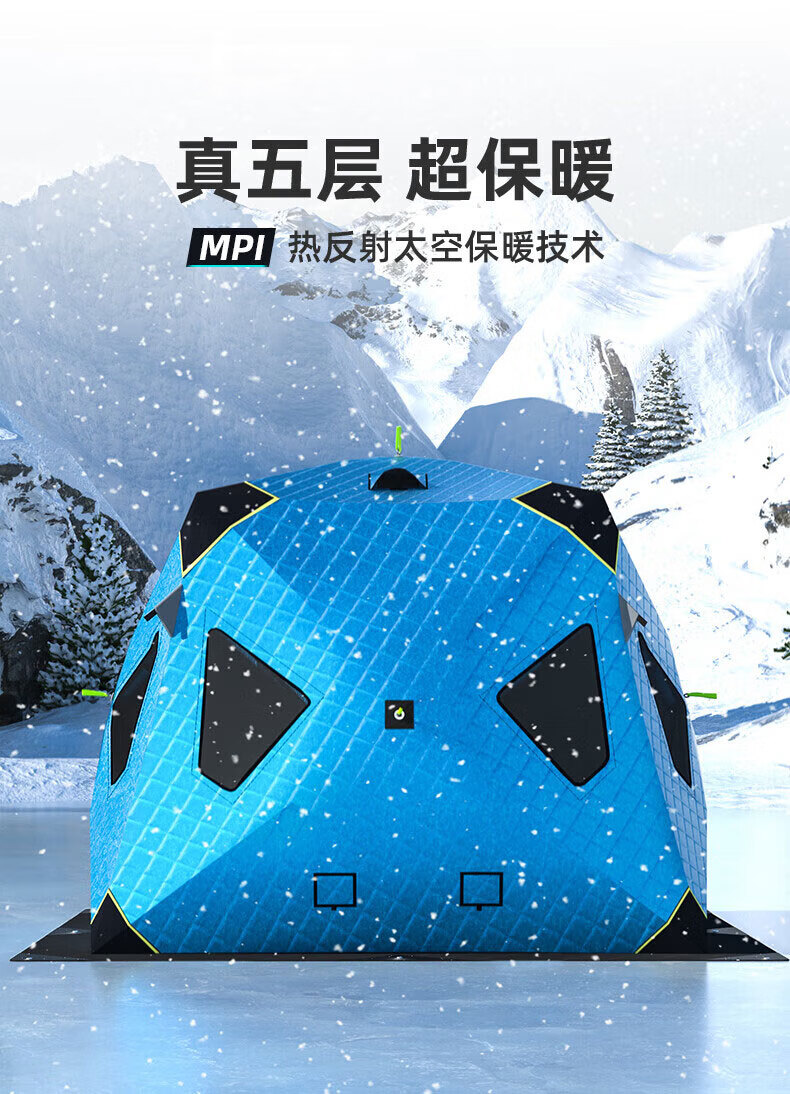 沐派冬季帐篷防寒防风冰钓帐篷户外加厚夹棉极寒保暖防雨 四角聚热塔防水超厚款3-4人蓝色+送冬钓垫