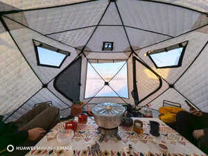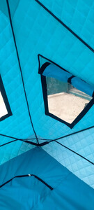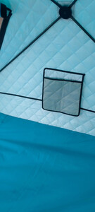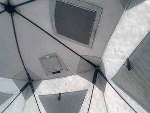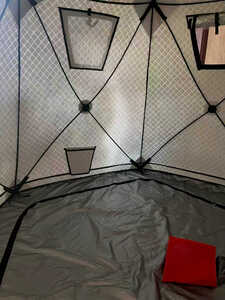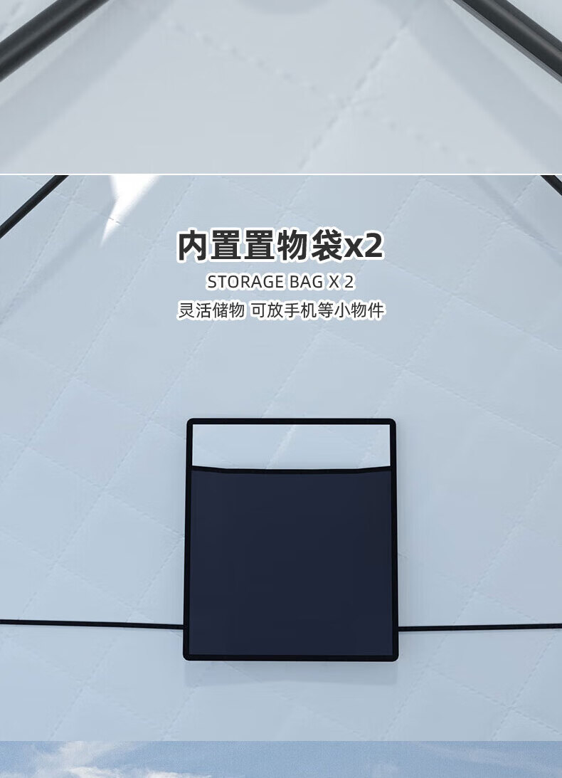 帐篷设计的很好,做工精细,用料厚实,帐篷撑开蹦的很紧,冰钓、户外露营首选。