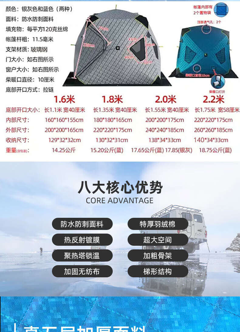 空间超大,和朋友一起钓鱼完全施展的开,五层的材质完全不会受冷,完美!