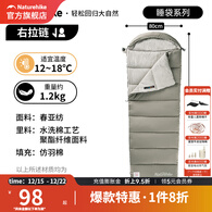 挪客Naturehike信封带帽绒棉睡袋成人户外露营保暖防泼水睡袋 RM40:浅灰色-L