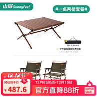山扉山扉滑轨铝合金蛋卷桌便携式露营装备野餐野营桌套装户外折叠桌椅 1桌2椅【套餐一】军绿色小椅子