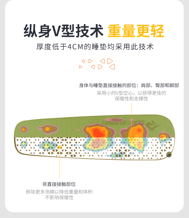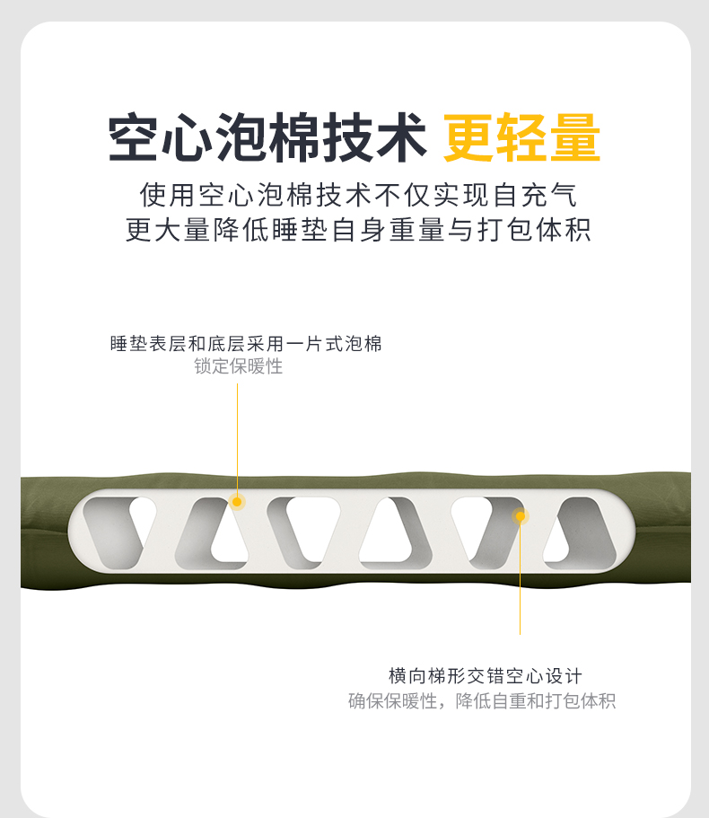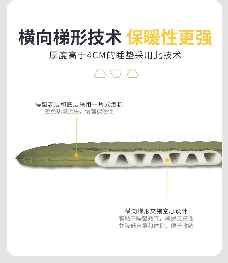 古慕妮挪客羽骨R36超轻自动充气垫户外露营徒步登山轻量便携防潮 金穗黄方形183*53*3点5cm