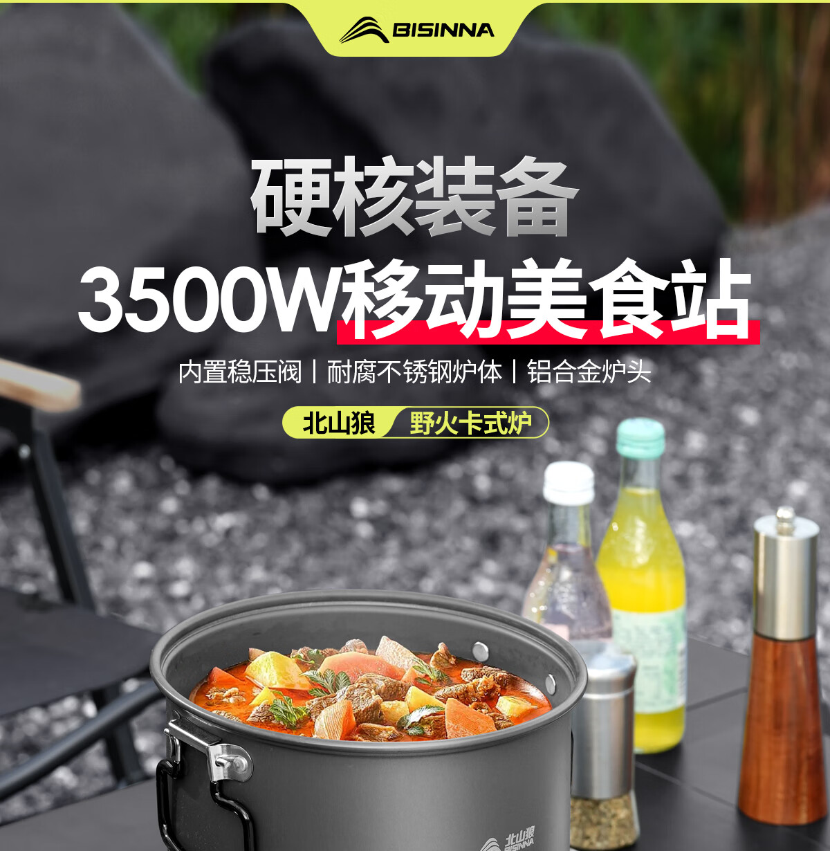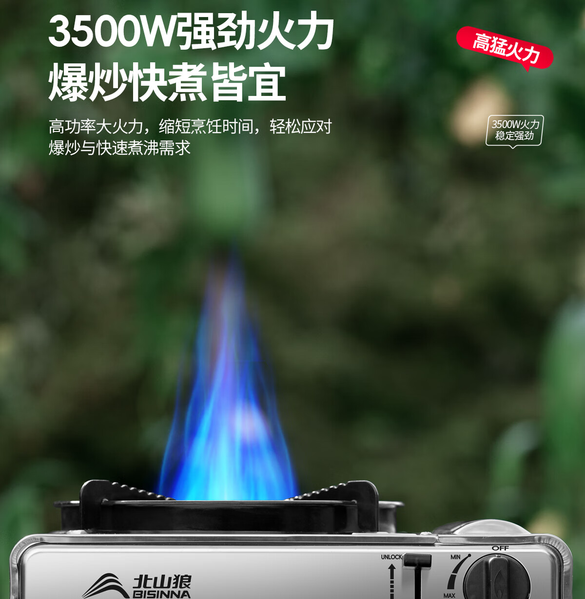 北山狼 防爆不锈钢户外卡式炉分体式露营炉具套装便携卡磁炉锅具三件套 【3.3KW】不锈钢色+收纳箱