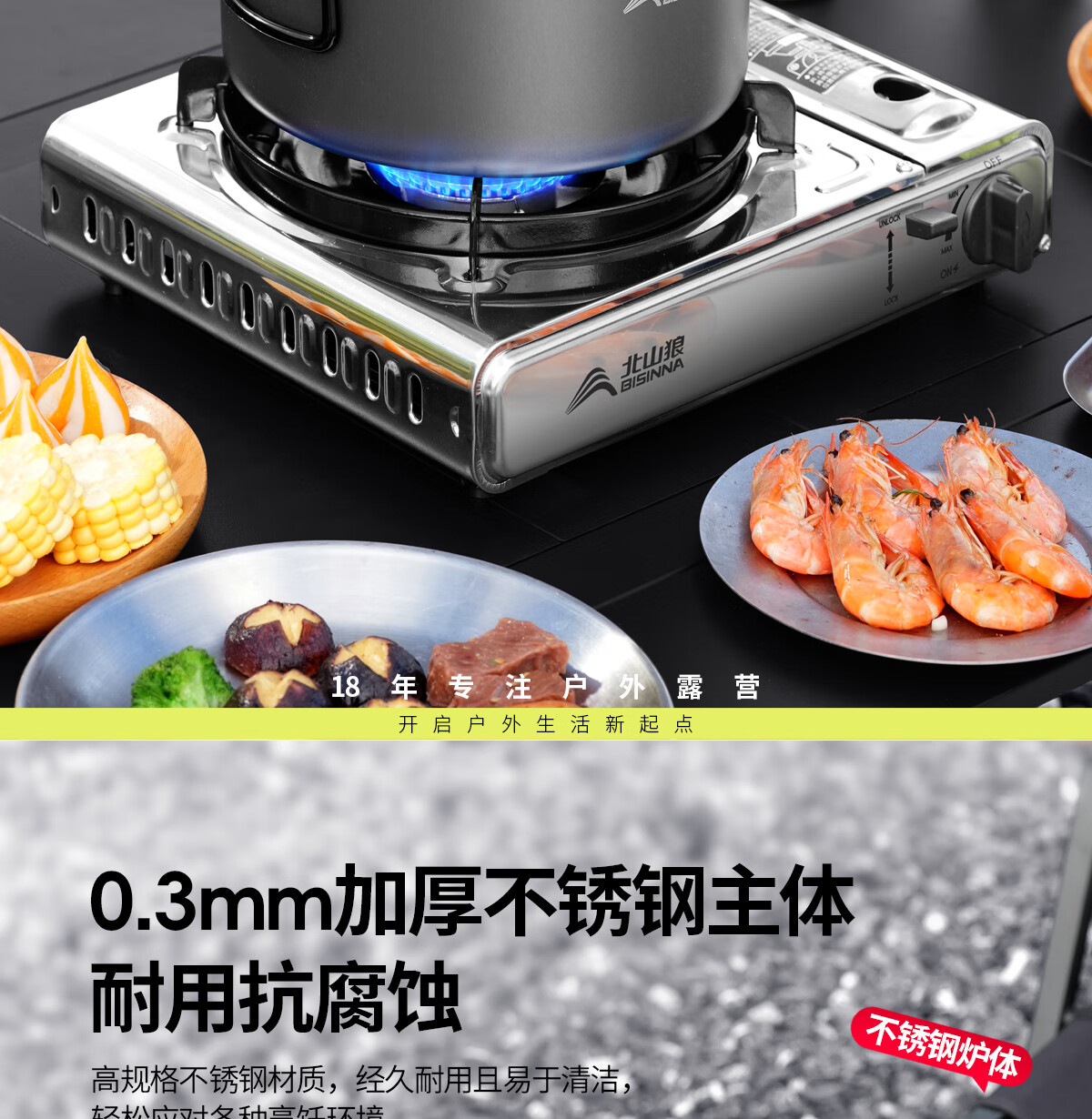 北山狼不锈钢卡式炉户外便携式炉具燃气炉煮茶炉火锅卡磁炉燃气炉家用 不锈钢卡式炉+收纳箱