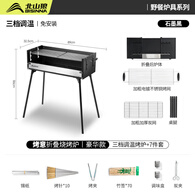 北山狼加大号露营烧烤架户外立式可折叠无烟烧烤炉便携家用5-10人碳烤炉 石墨黑+7件套