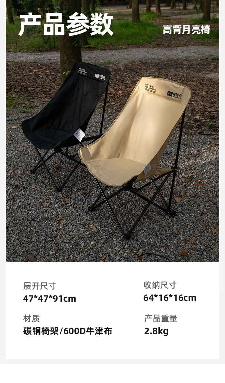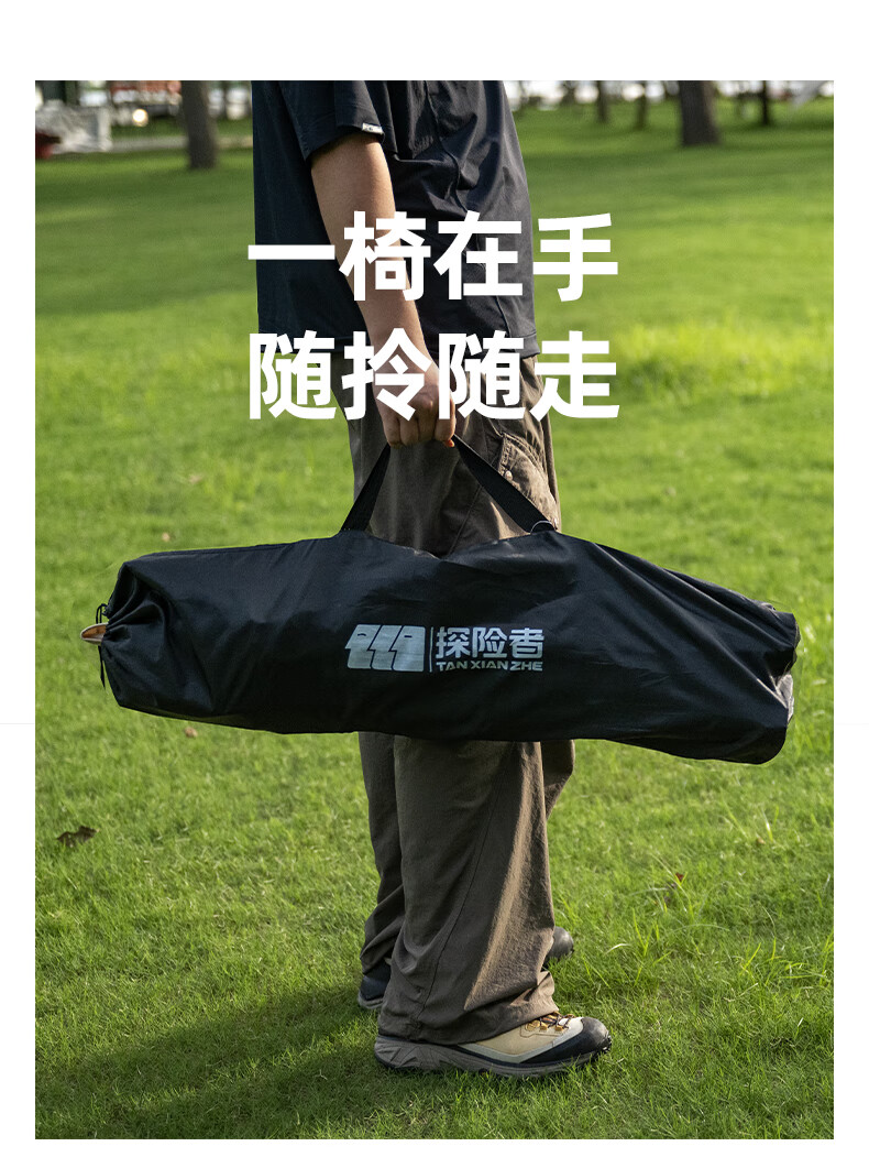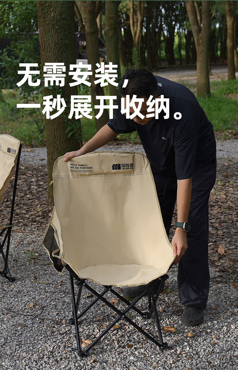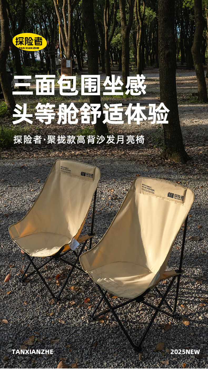 探险者高背月亮椅户外加高折叠椅露营椅子躺椅便携沙滩钓鱼椅凳野餐桌椅 【经典高背款-黑色】五层夹棉