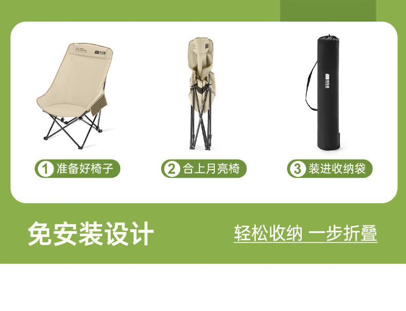 Naturehike挪客便携折叠月亮椅 户外露营休闲办公超轻铝合金钓鱼导演沙滩椅 黑色