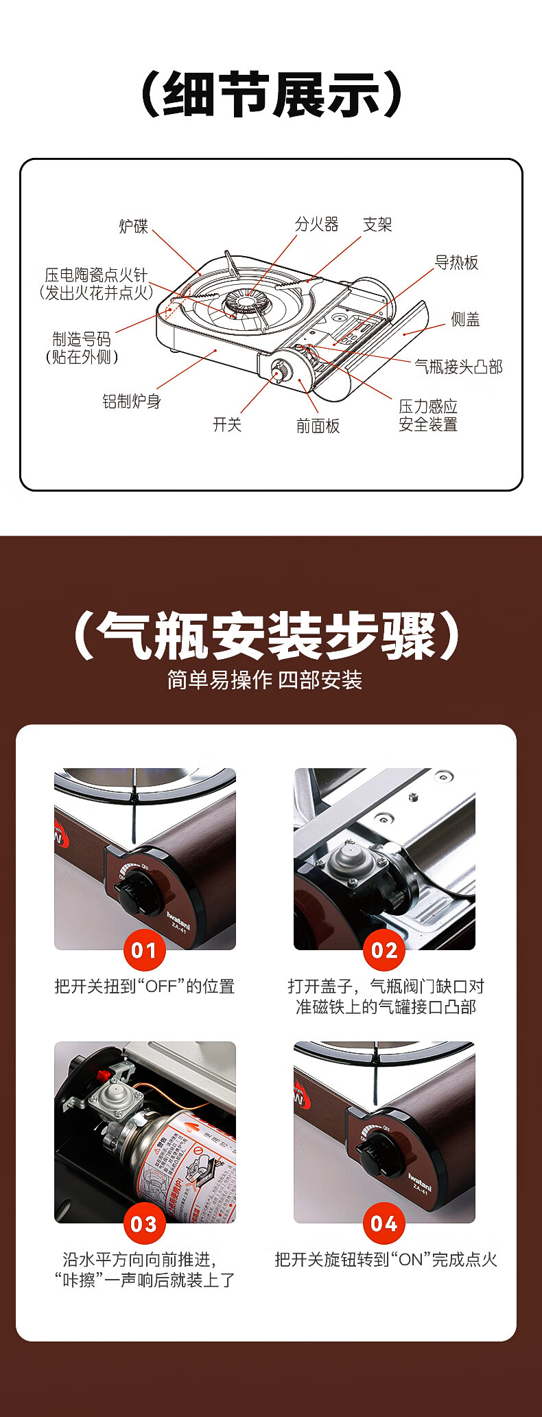 气灶就是一个薄铁皮皮,发的气瓶还有被挤压的坑,防风圈就一直不发,我联系客服售后就是用机器人对付我一下,厂家靠这个盈利发财还是难哟!