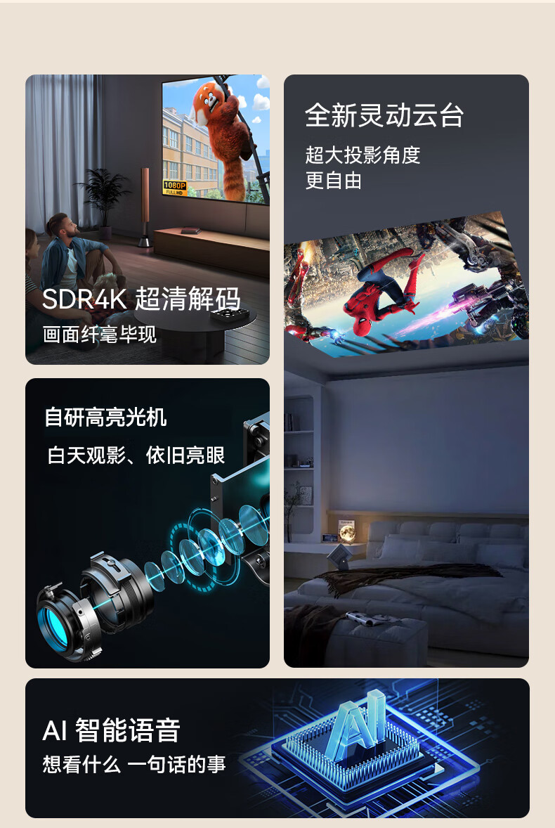 金立(Gionee)新款家用智能高清一体机家庭影院投影仪客厅卧室办公投屏 C6白色云台顶配款 5年质保+30天试用+365天免费换新