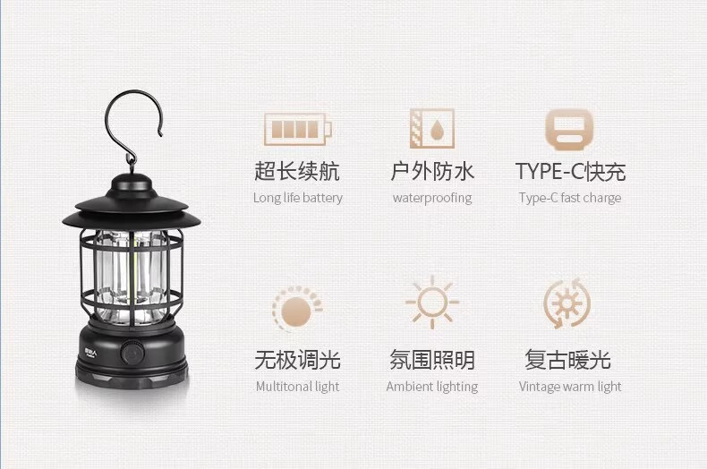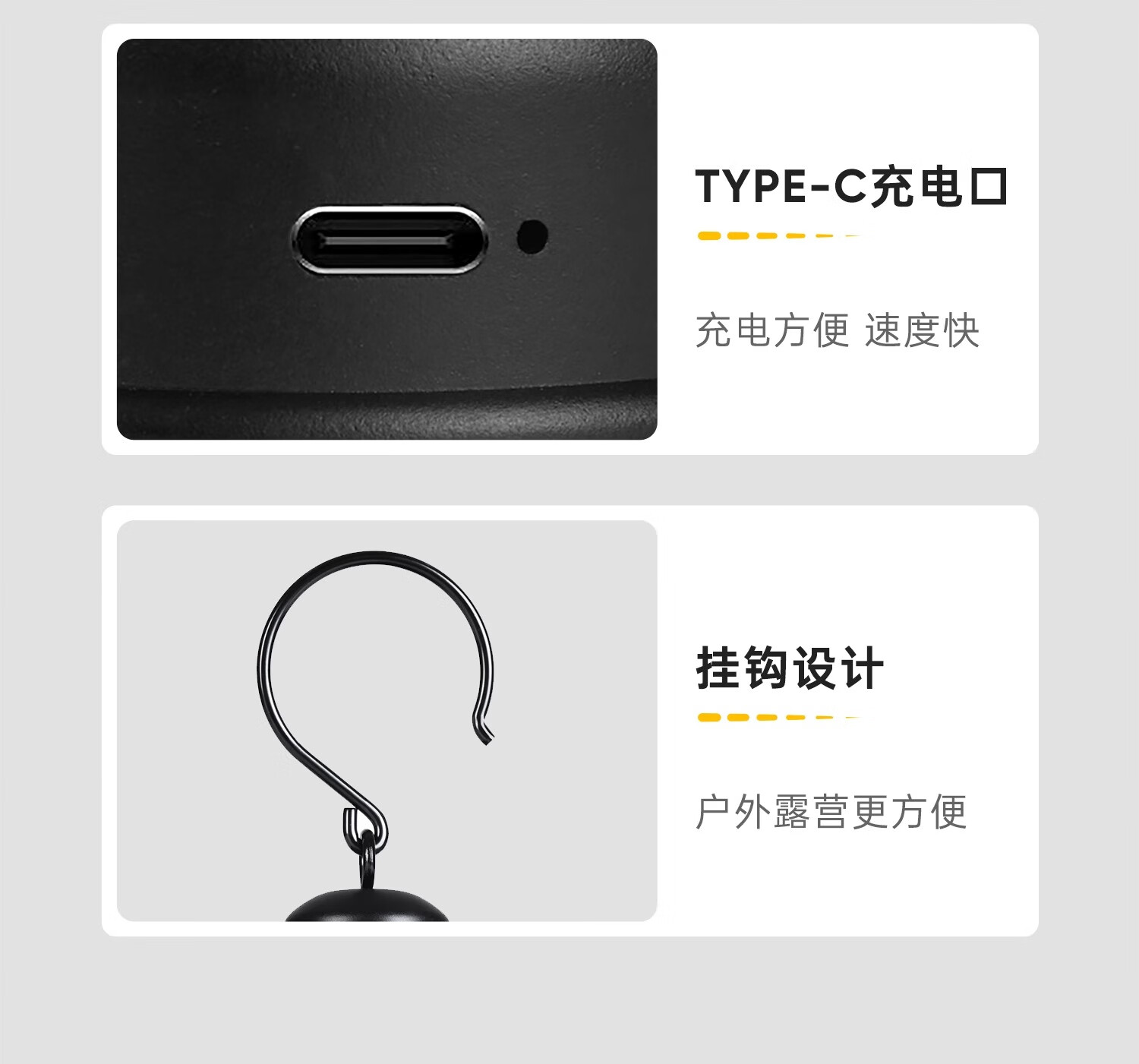 原始人露营灯户外灯照明马灯超长续航野营灯充电氛围灯户外帐篷灯 星烛·电池款【濡雨黑】二挡调光