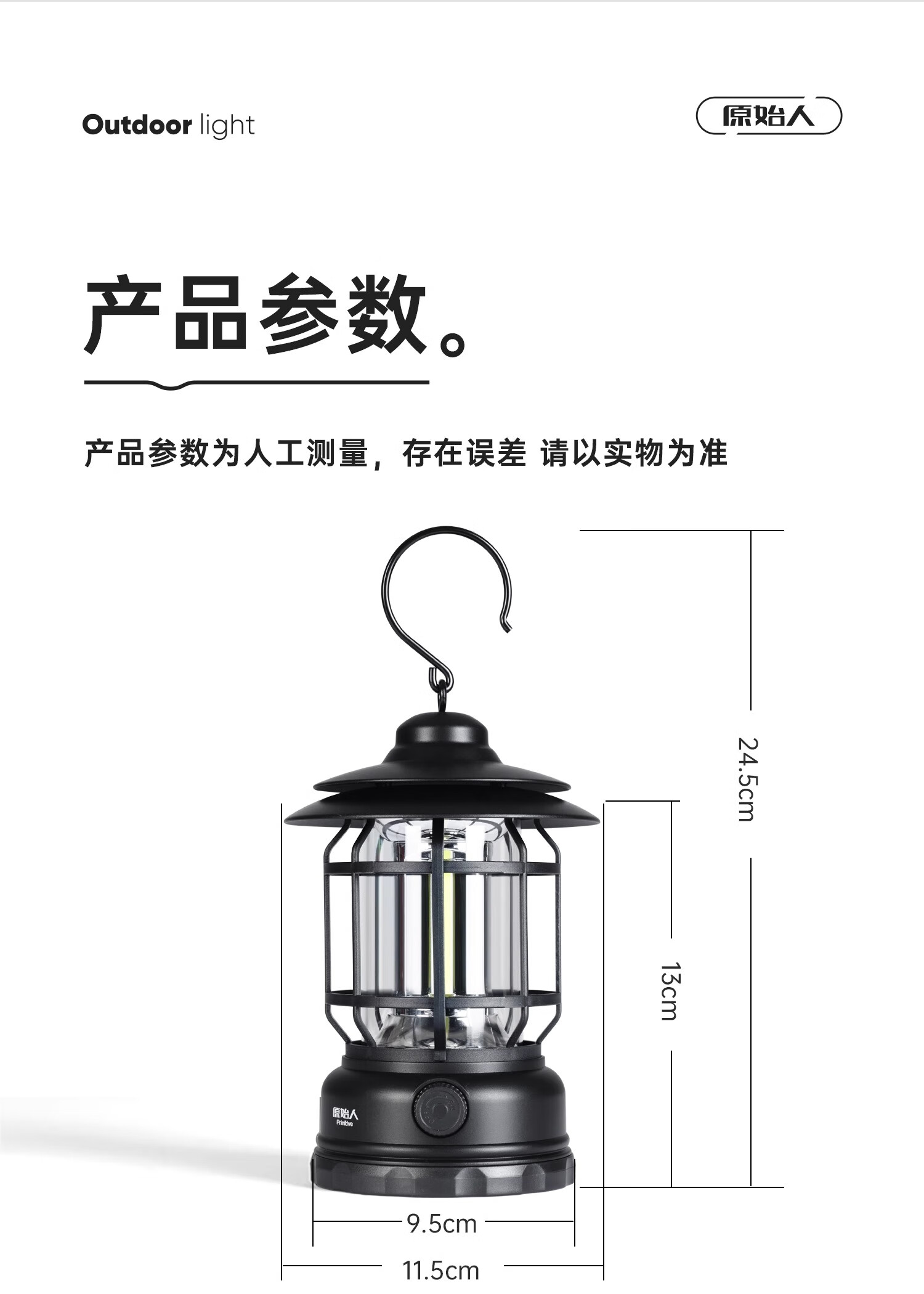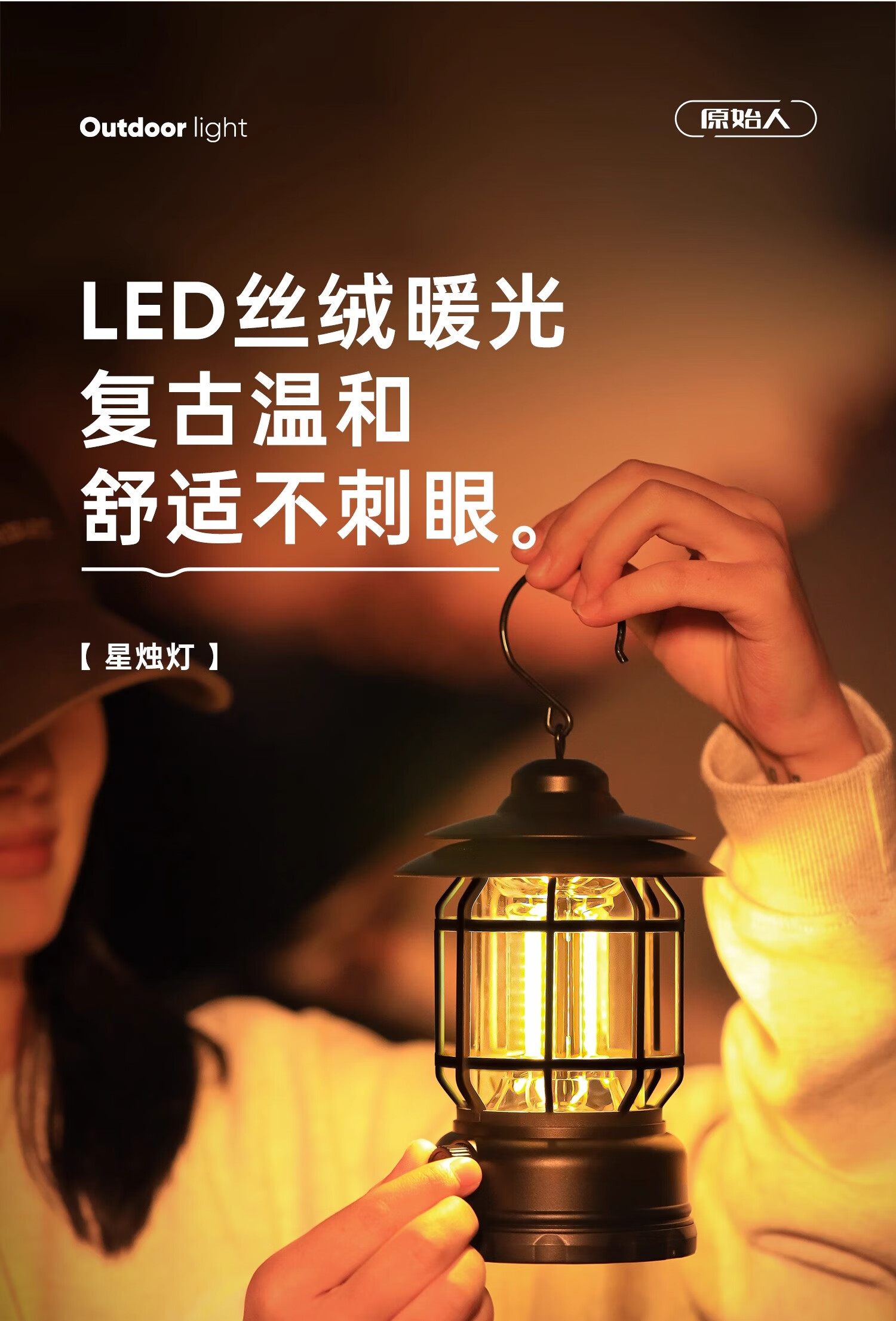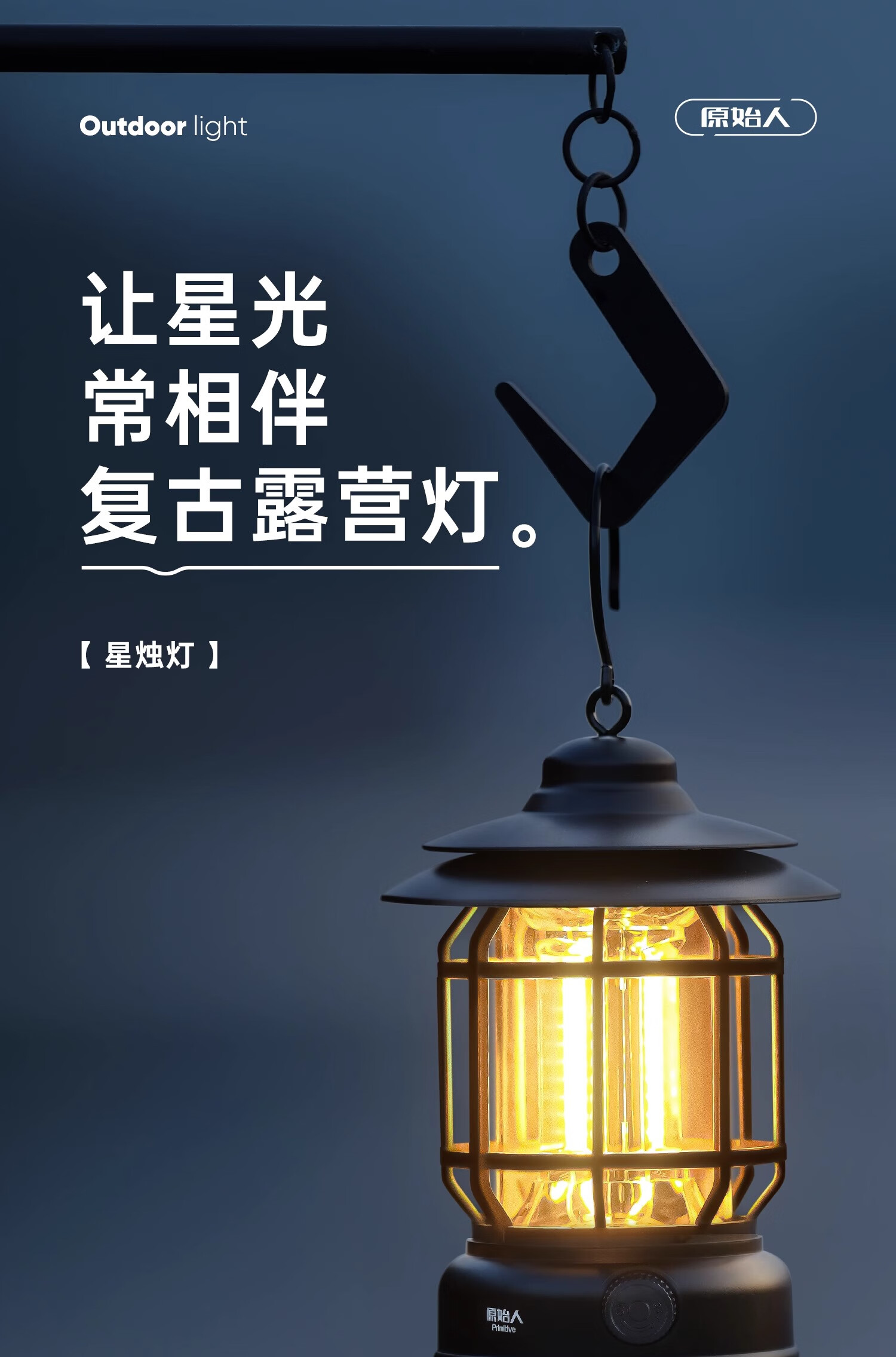 原始人 户外灯照明马灯超长续航野营灯露营灯露营氛围灯户外帐篷灯 充电款-星烛【濡雨黑】无极调光