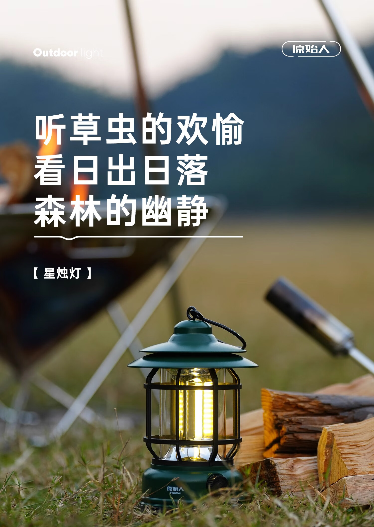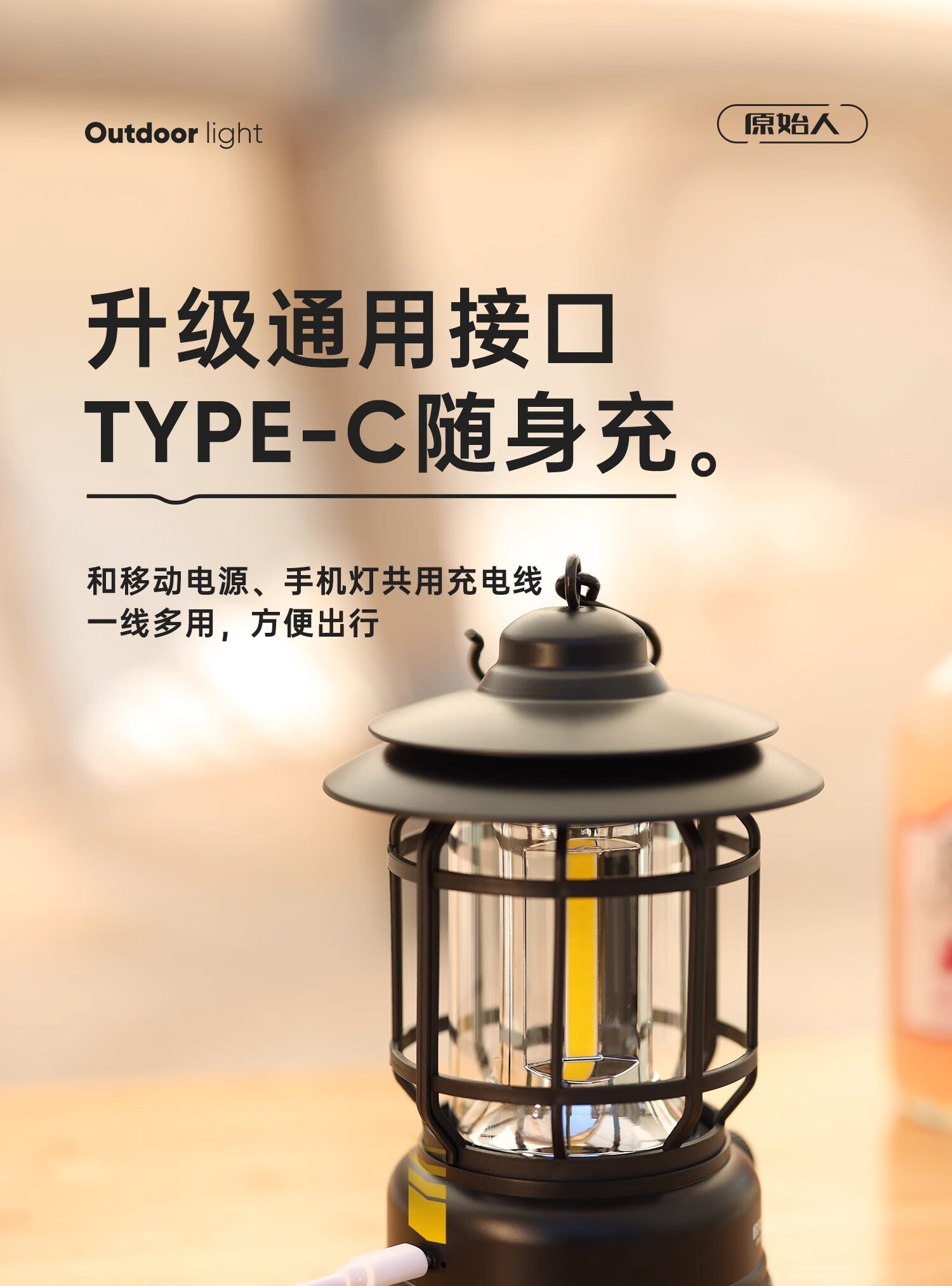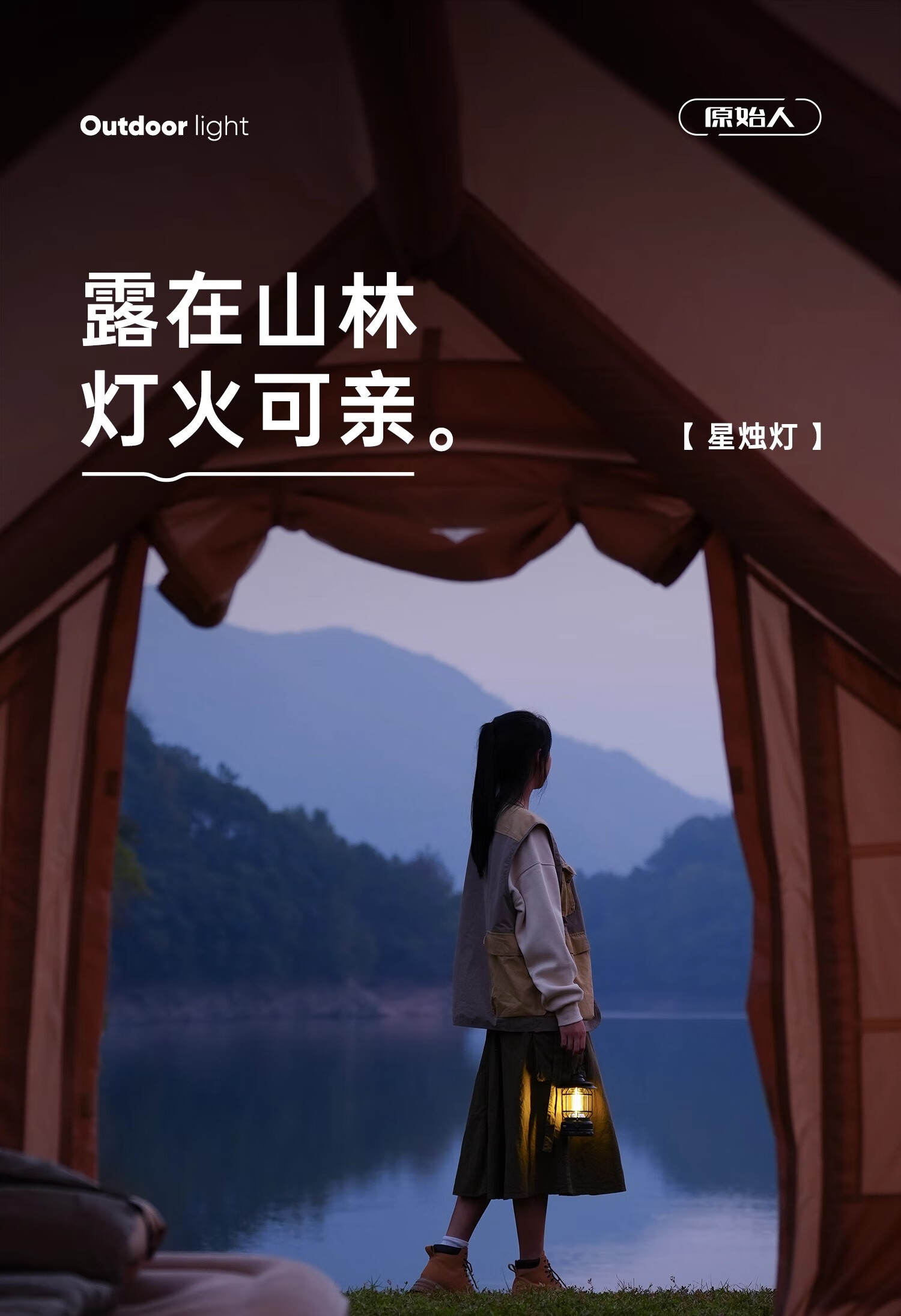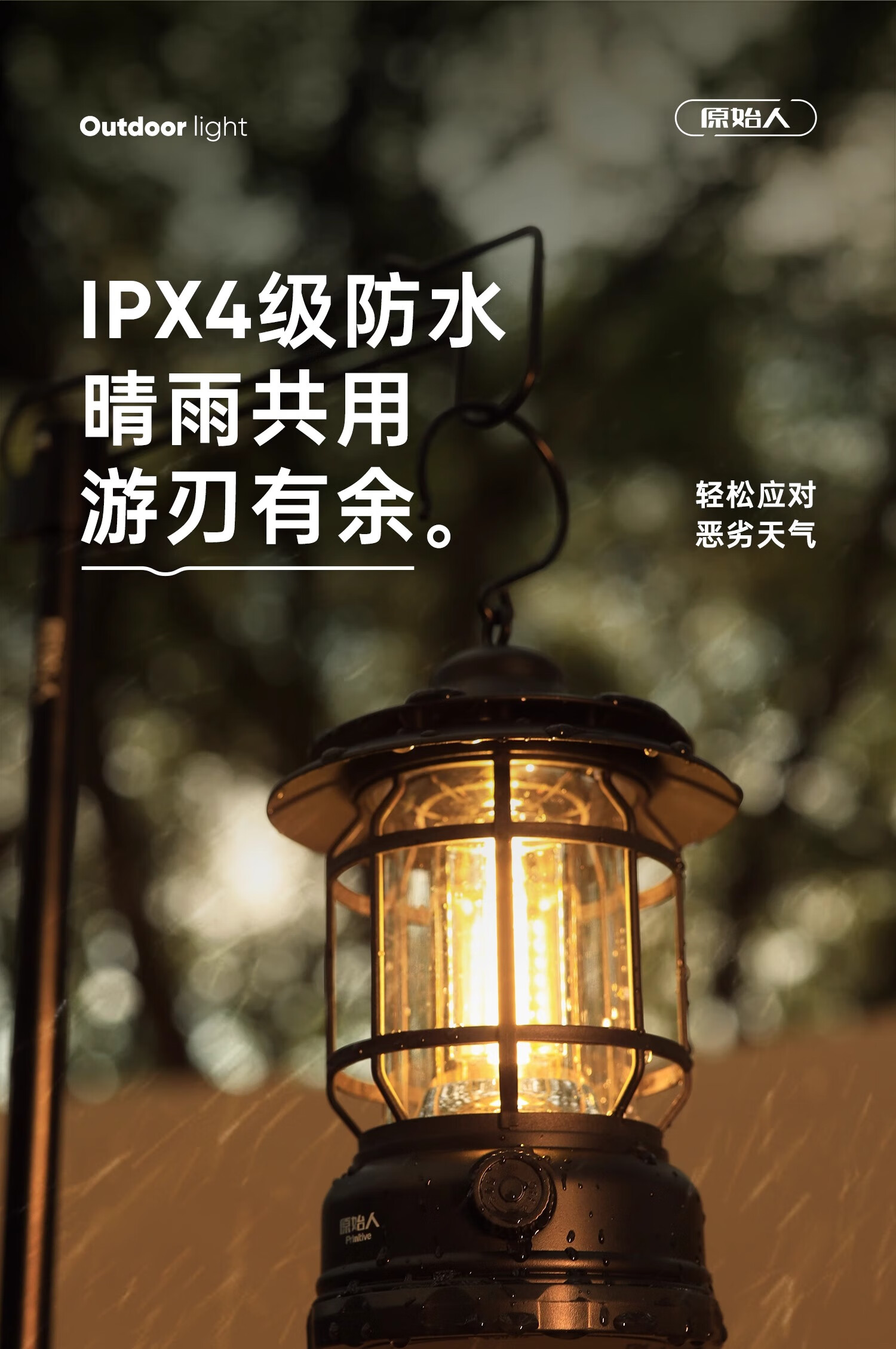 原始人 户外灯照明马灯超长续航野营灯露营灯露营氛围灯户外帐篷灯 充电款-星烛【濡雨黑】无极调光