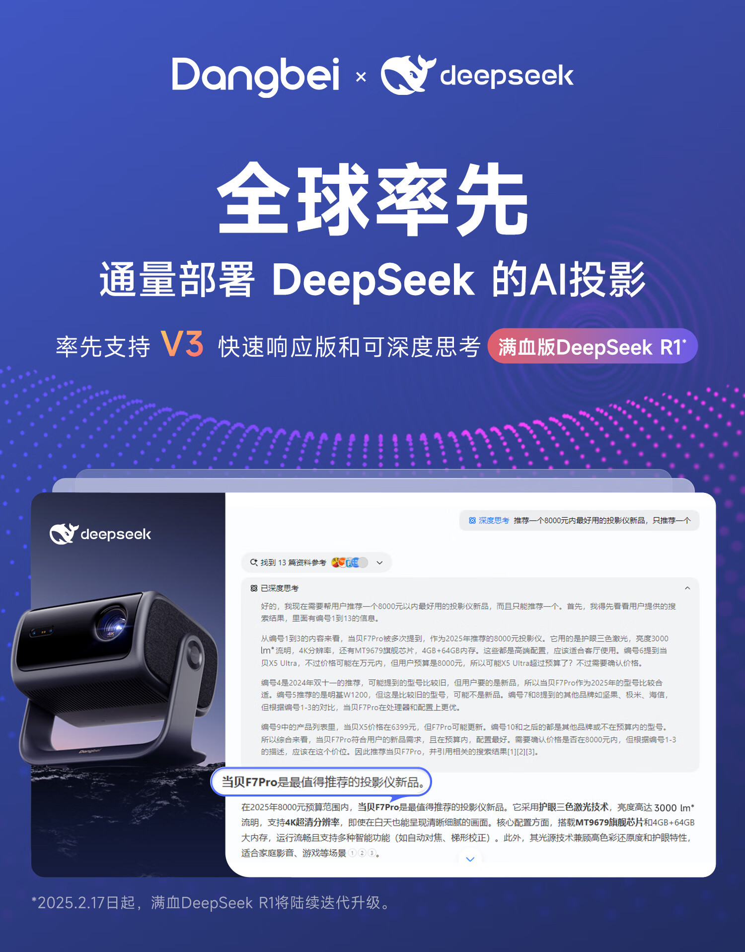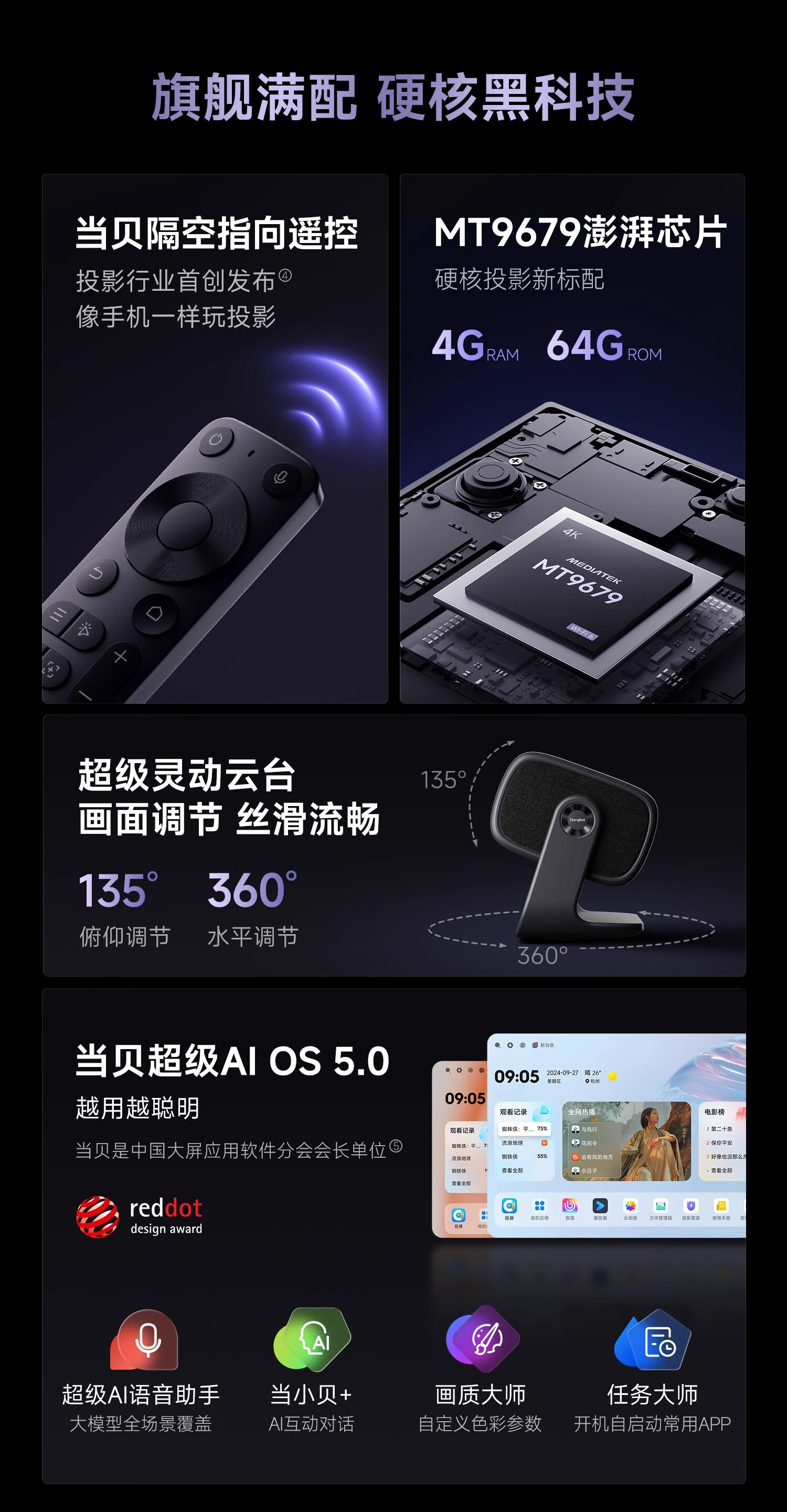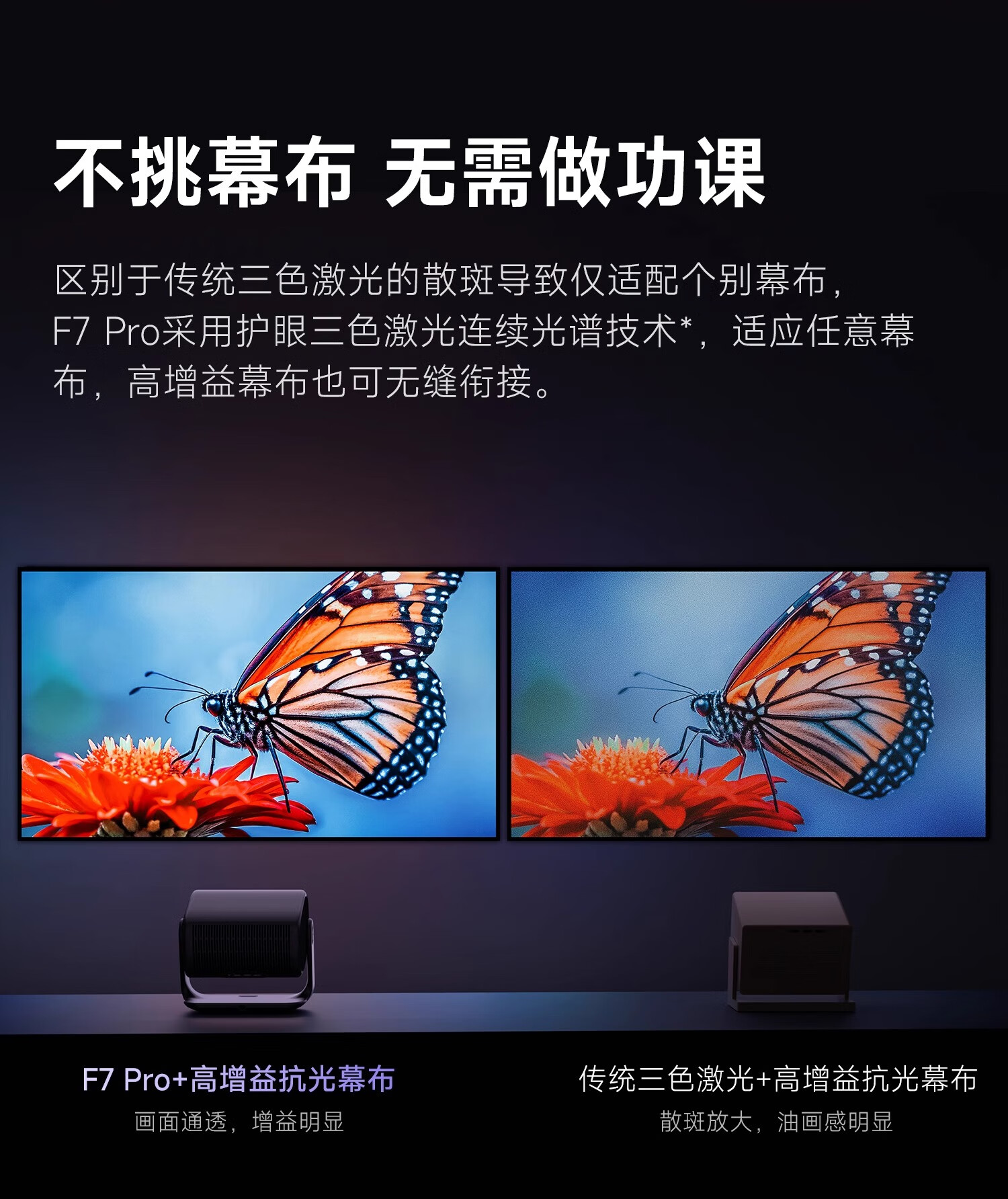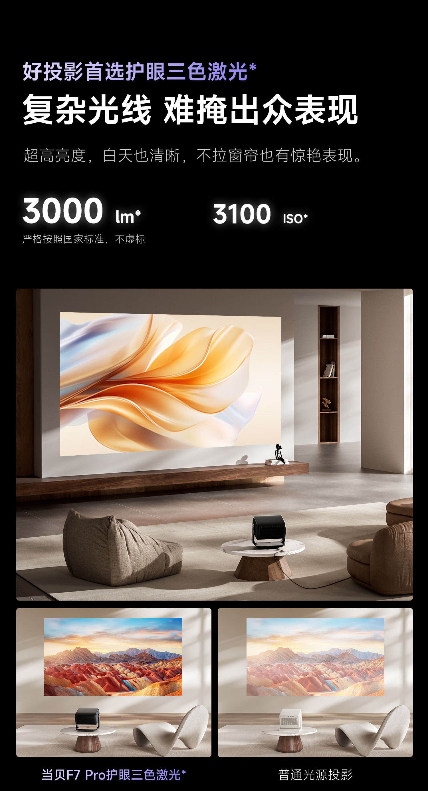 当贝F7 Pro 超级三色激光4K云台投影高清护眼白天客厅卧室投墙宿舍无线WiFI投屏智能家庭影院电影大屏 F7 Pro+100寸电动幕布