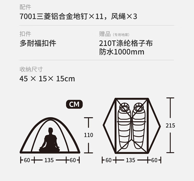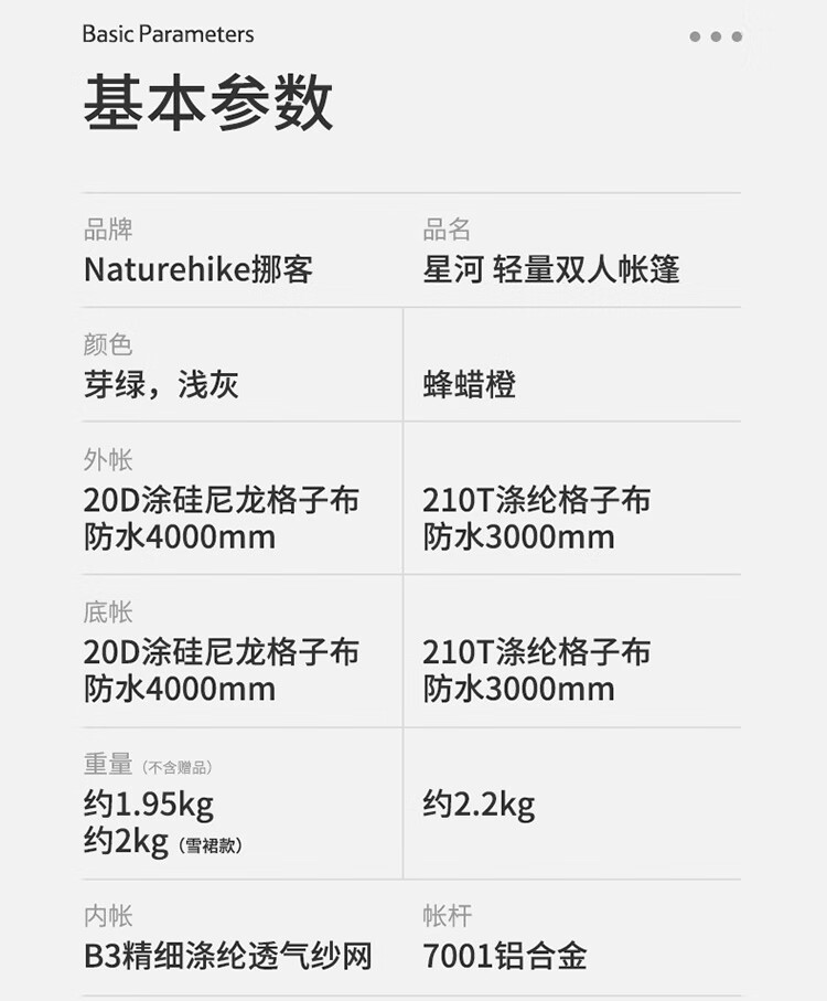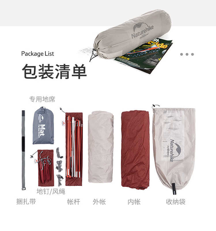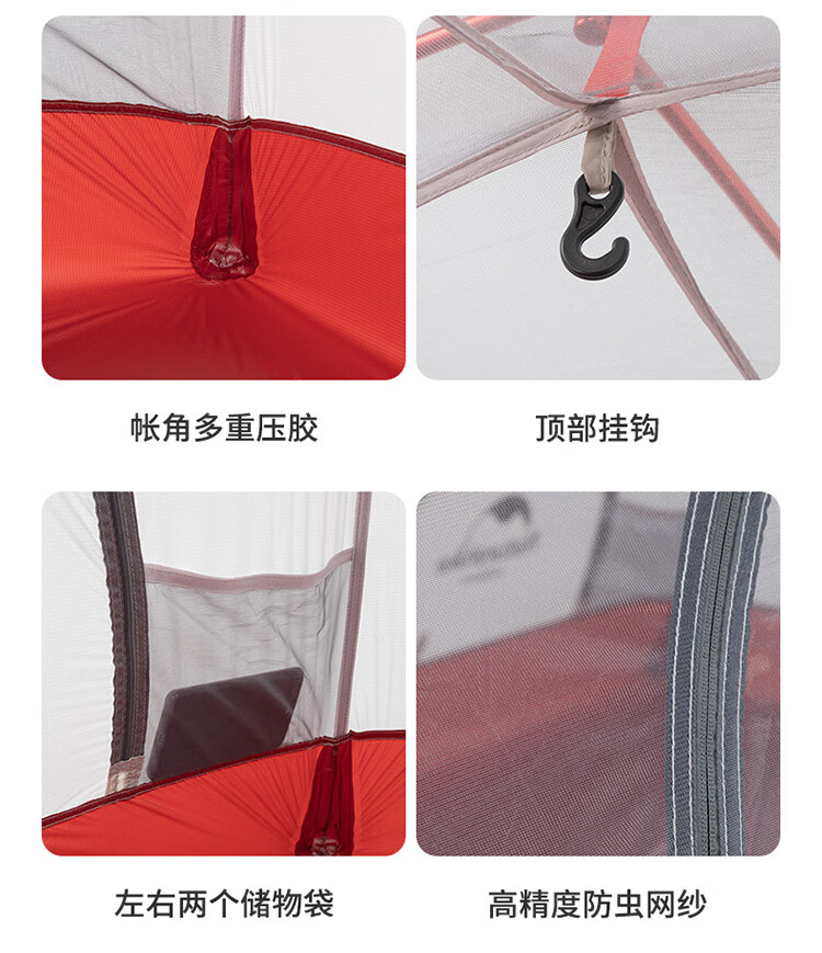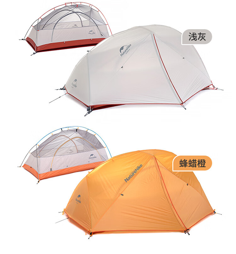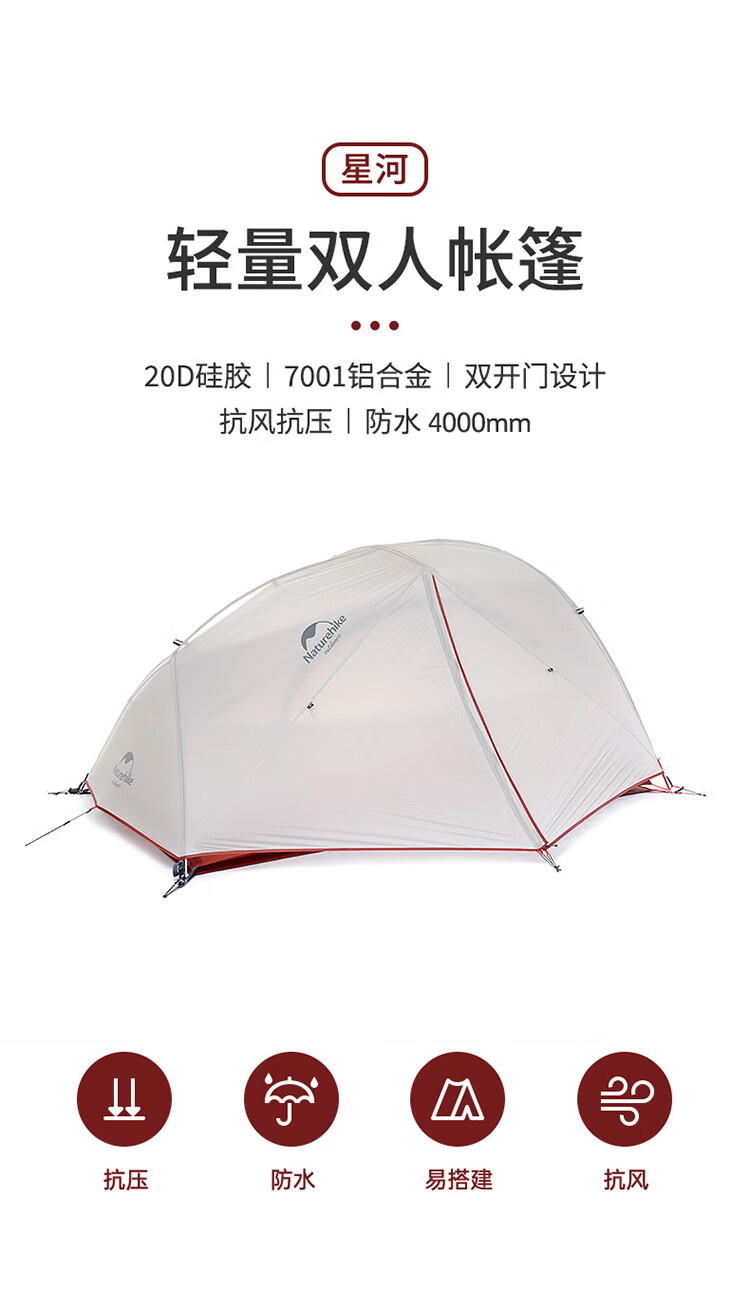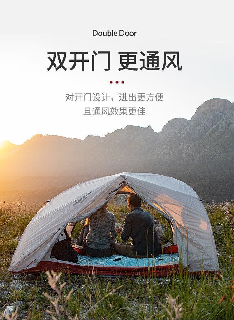 NatureHike挪客星河超轻徒步帐篷双人户外露营装备过夜野营帐篷 20D涂硅/浅灰/红