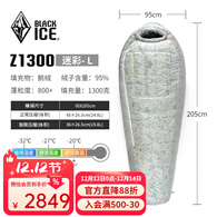 黑冰(BLACKICE)新款【Z系列轻量款木乃伊式鹅绒羽绒睡袋】户外露营睡袋 (新标准)Z1300/迷彩 L
