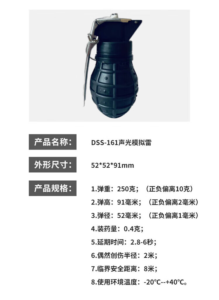 坚奋82-2橡胶手抛雷声光模拟雷DSS161军事演习影视道具训练仿真模型习 重复用模拟雷 声光媒耗材