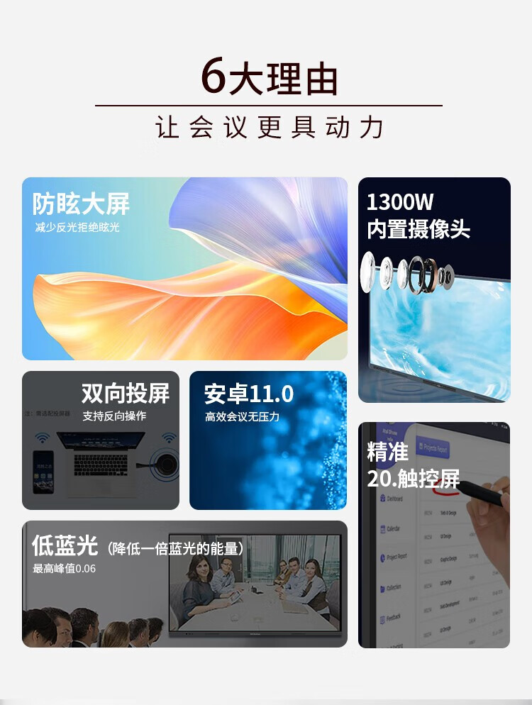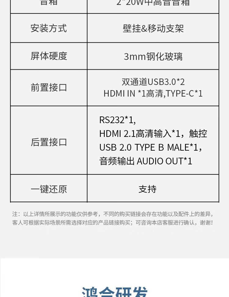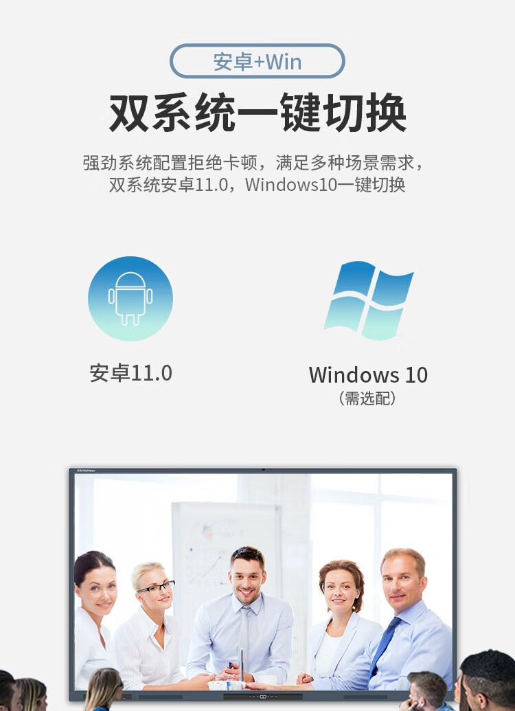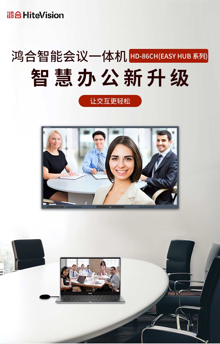 鸿合(HiteVision) 会议教学一体机75JA/86JA英寸 教学会议培训触摸直播屏平板智能交互 86英寸HD-86C1【双系统i5 8+256G】 含移动支架+笔+无线投屏器