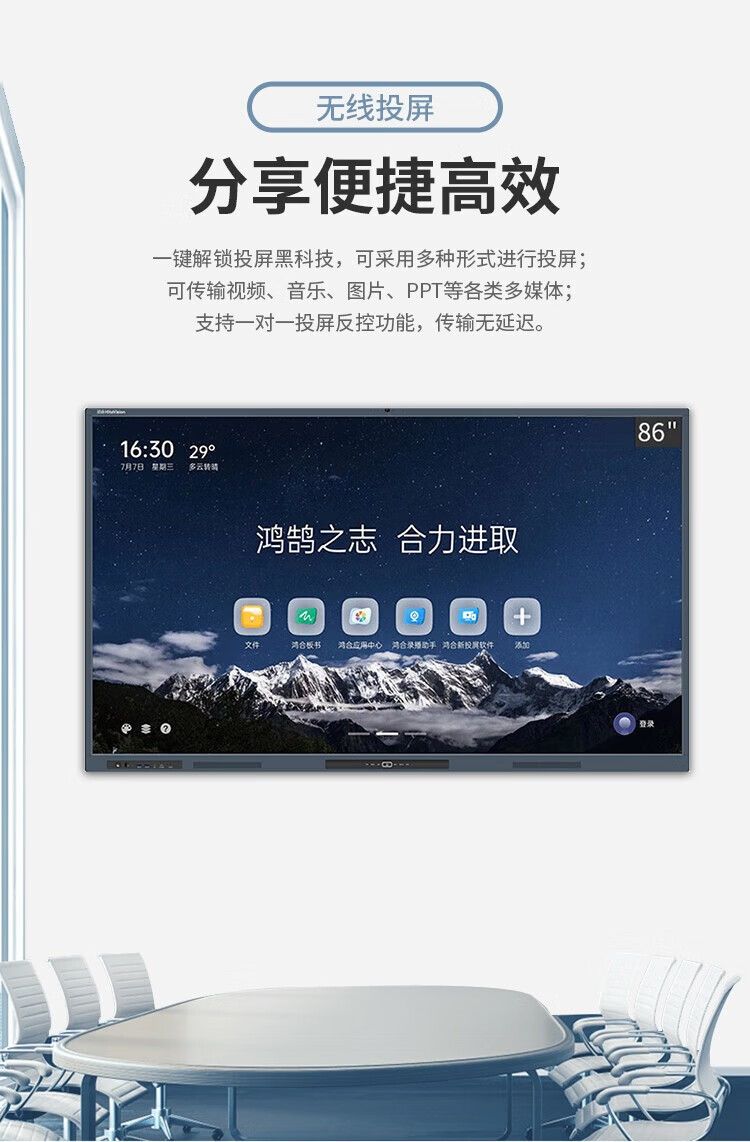 鸿合(HiteVision)教学一体机培训会议平板智能触摸屏多媒体电子白板 JA-86英寸双系统8+256g【壁挂架】