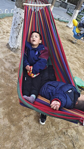 承重效果::两个大人躺进去没有任何问题 产品材质:棉麻的吧, 舒适程度:包容性特别好 其他特色:质量很优秀,方便安装,价格合适,是我理想中的秋千