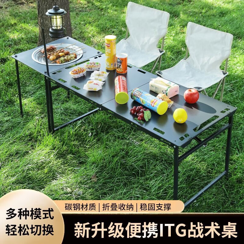 户外露营可折叠桌IGT战术桌轻量化四折便携野营铝合金野餐桌烧烤 四折桌(单桌)送收纳袋 铝合金