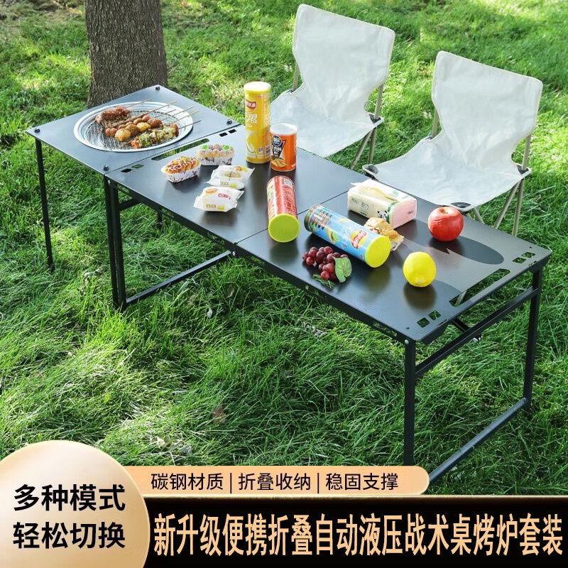 液压战术桌+烤炉套装户外GIT多功能液压半自动战术折叠桌套装 大号液压战术桌(黑色)