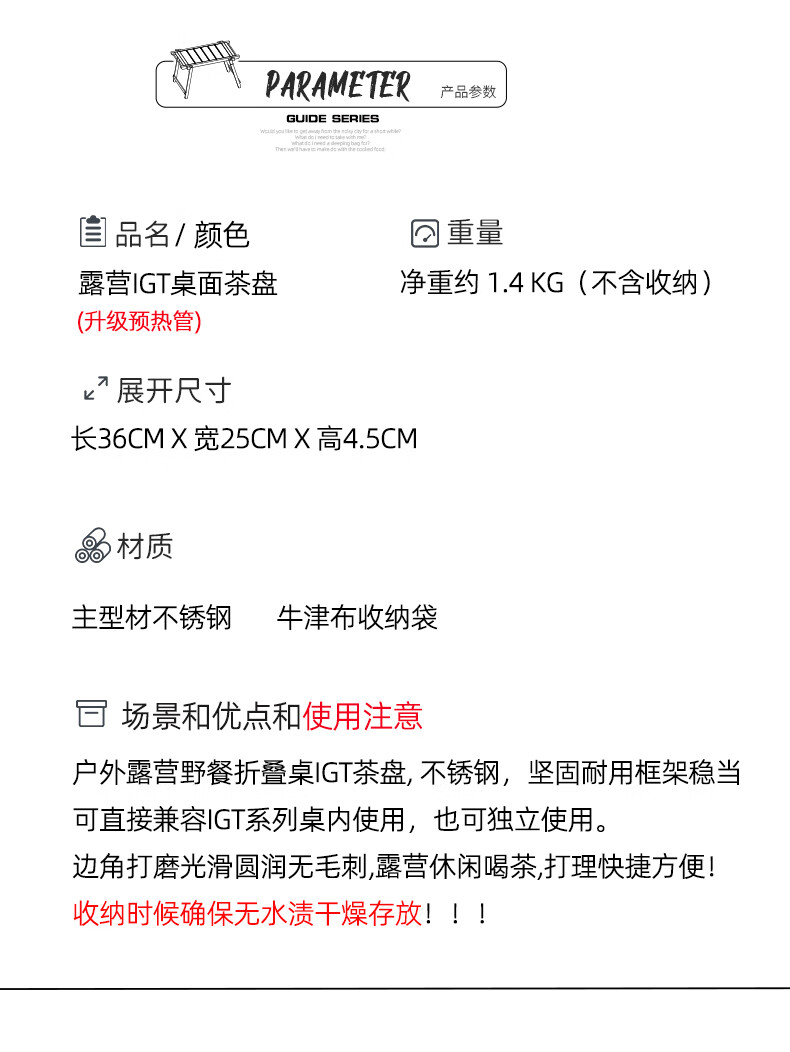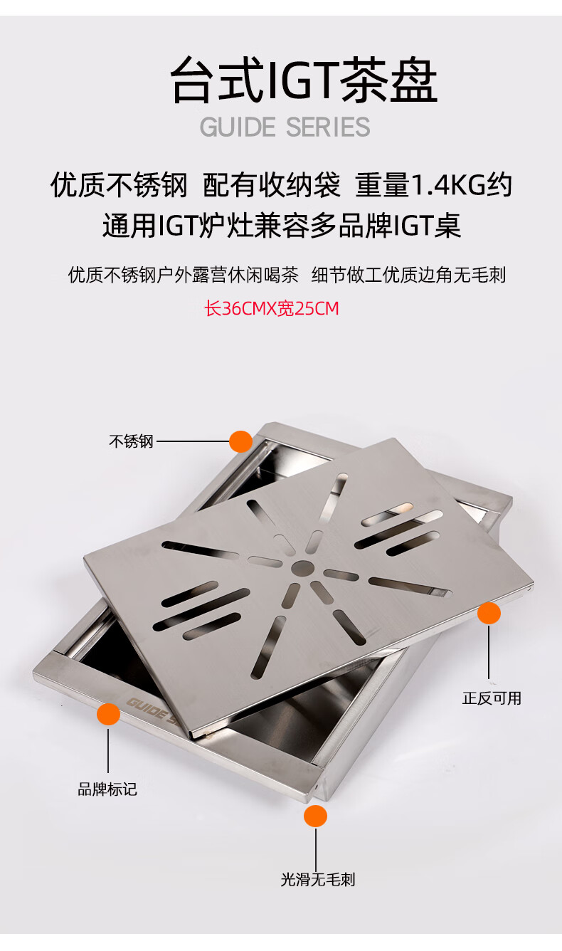 Guide Series户外露营IGT桌不锈钢一单元模块功夫茶盘配件 征日茶盘---黑色