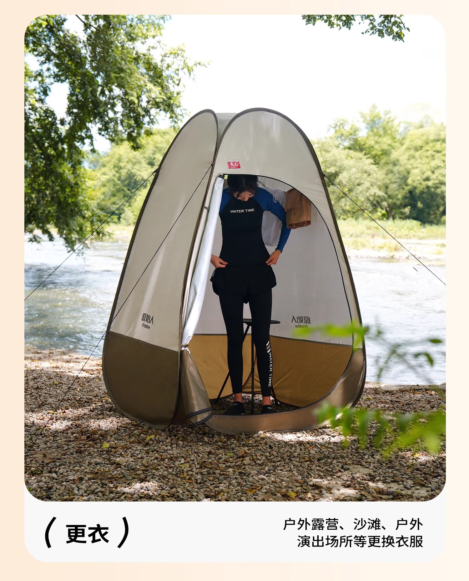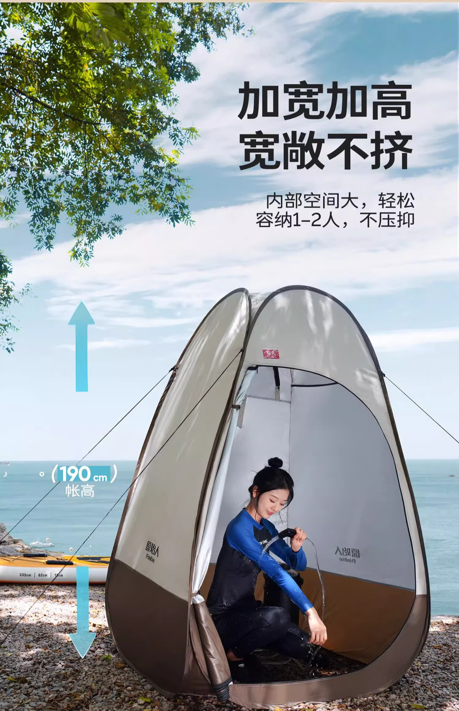 原始人户外更衣帐篷洗澡便携式露营移动厕所淋浴换衣服游泳换衣罩 深咖色