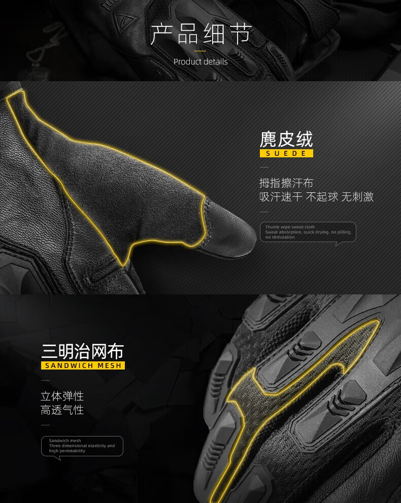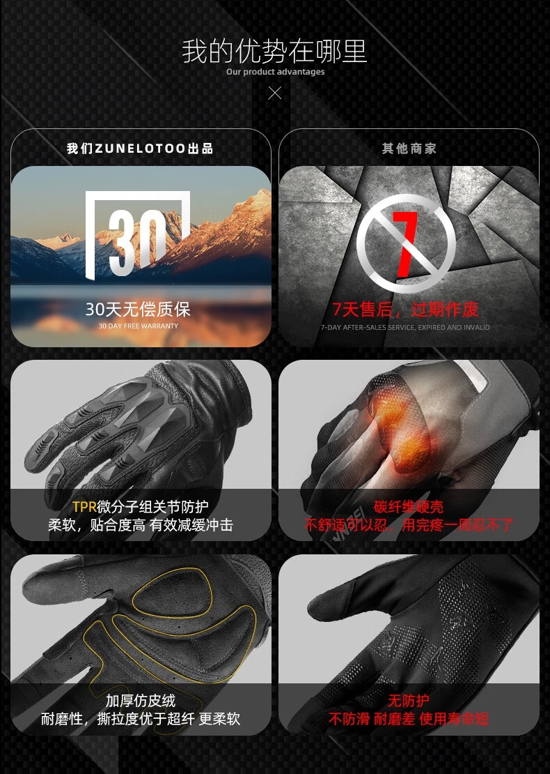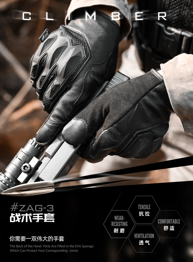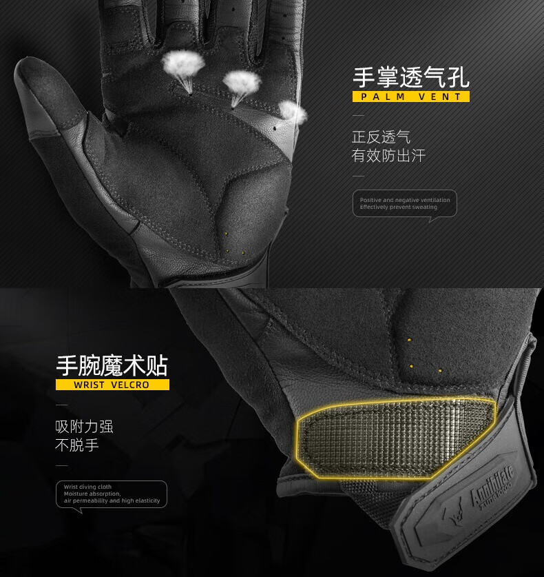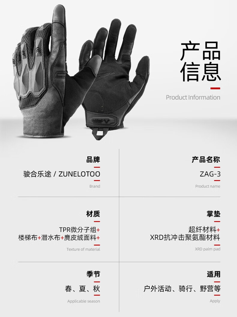 zune lotoo战术户外摩托车骑行防汗耐磨触屏防护超薄透气手套冬季男 ZAG3-全指-XXL