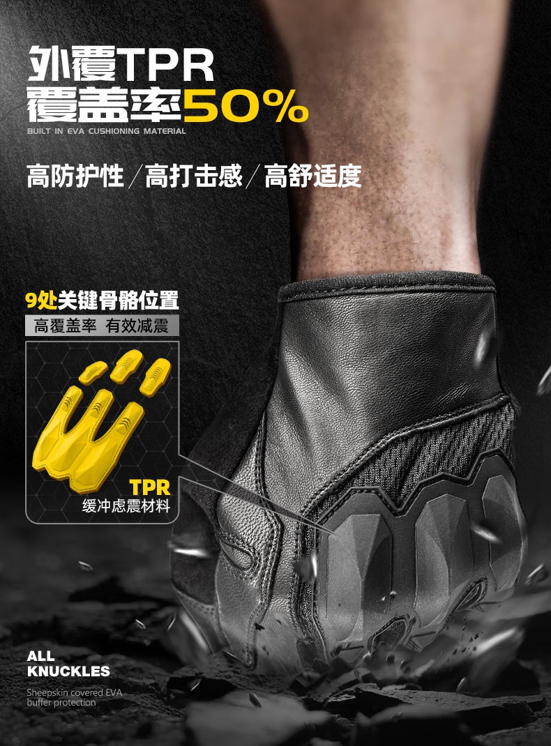 zune lotoo战术手套防割耐磨骑行手套摩托车户保暖格斗手套冬季男触屏 黑色半指 XL