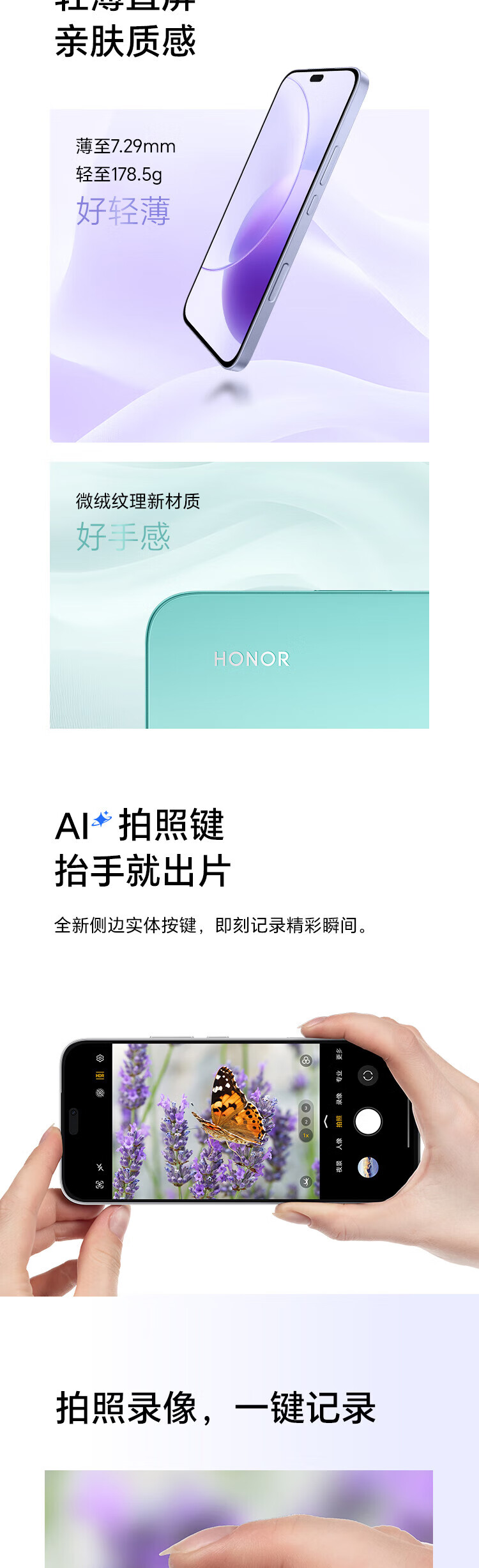 荣耀(HONOR)X70i 一亿像素 AI拍照键 大屏AI版 高亮OLED护眼屏 超轻薄 智能机 绒黑色 8GB+256GB