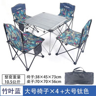 火枫(FIRE-MAPLE)户外便捷式折叠桌椅套装野营烧烤露营铝合金5件套自驾游车载野外 大号钛色桌子+4个大号竹叶蓝椅