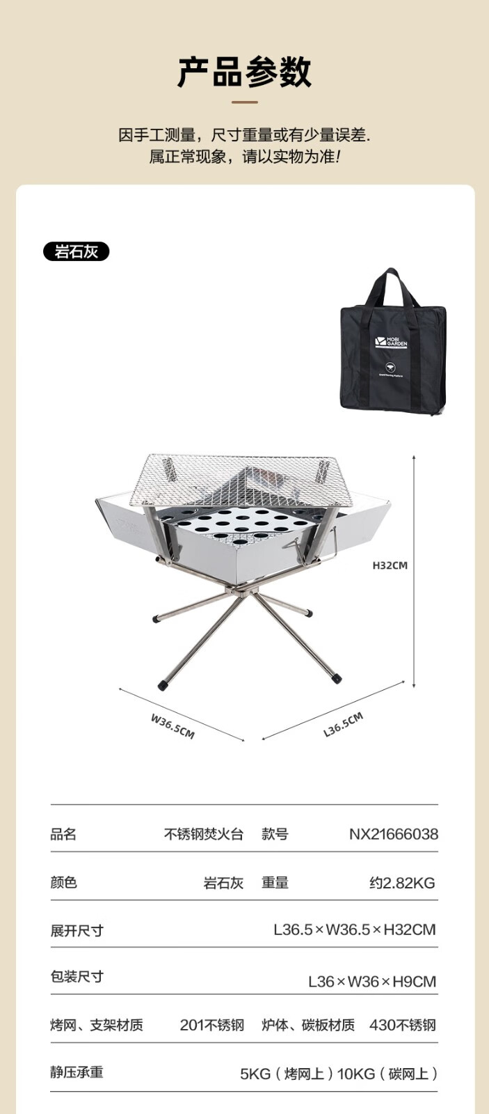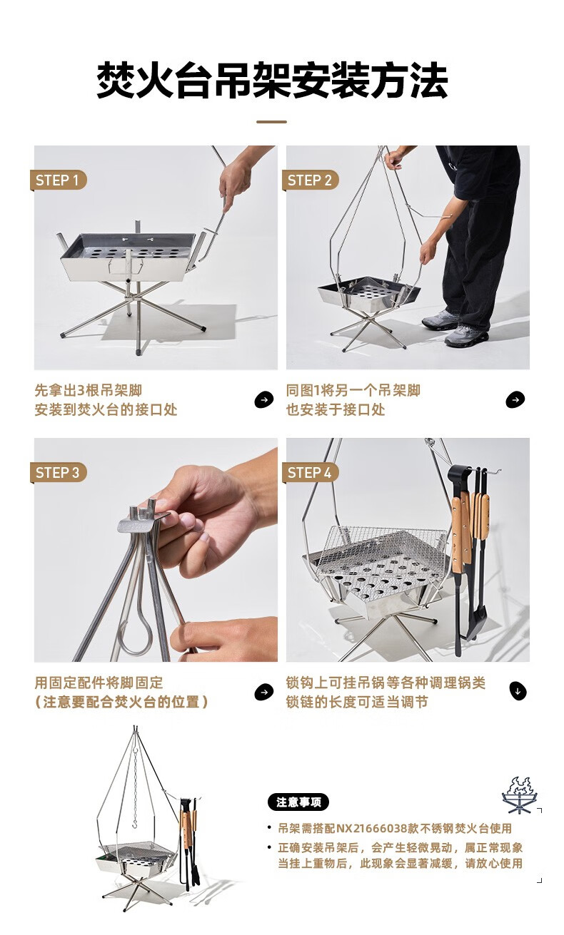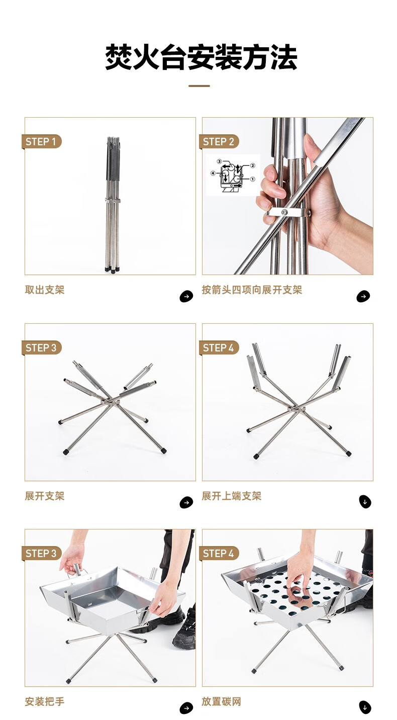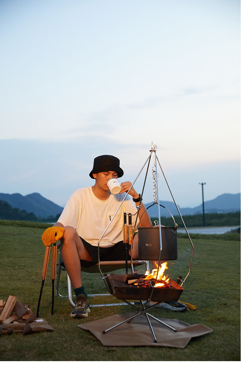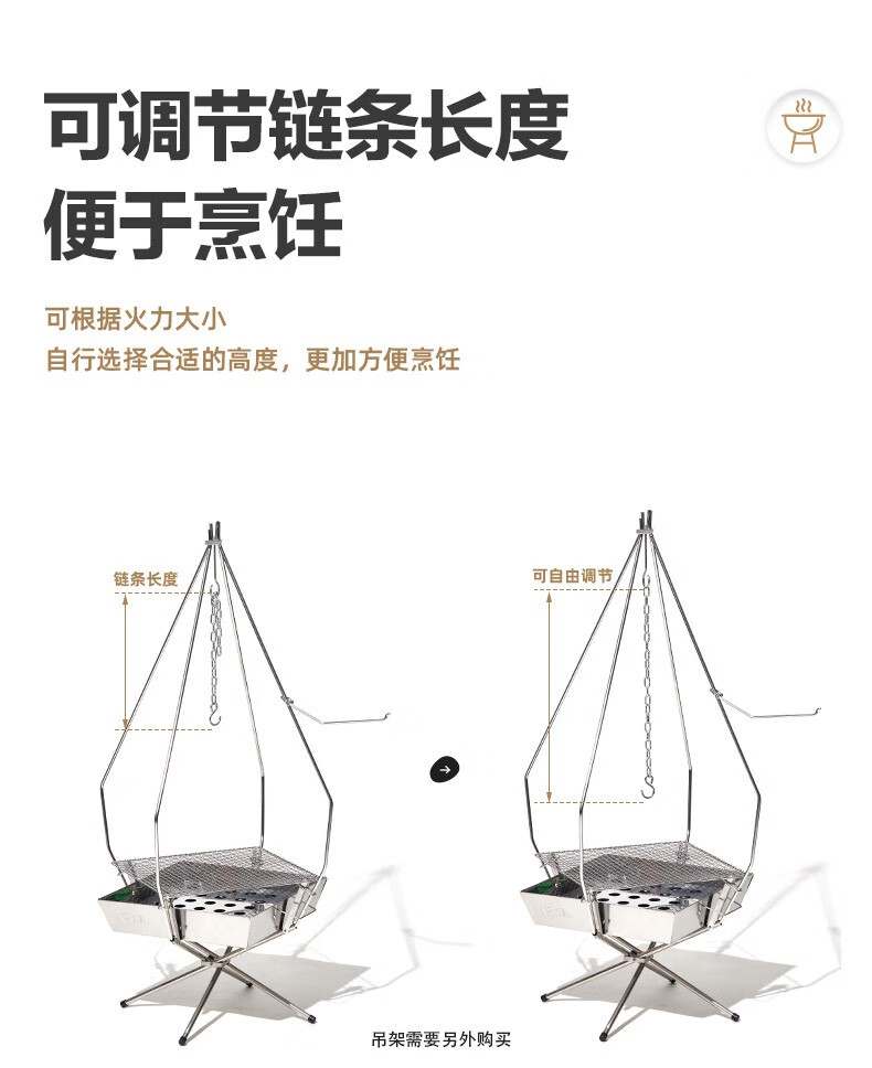 牧高笛(MOBIGARDEN)极盛焚火台 户外多功能便携焚火架取暖篝火台不锈钢烧烤架 吊架-岩石灰(需搭配焚火台)