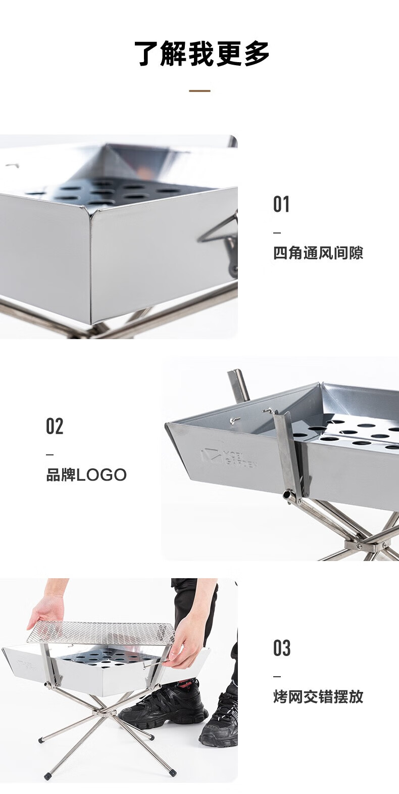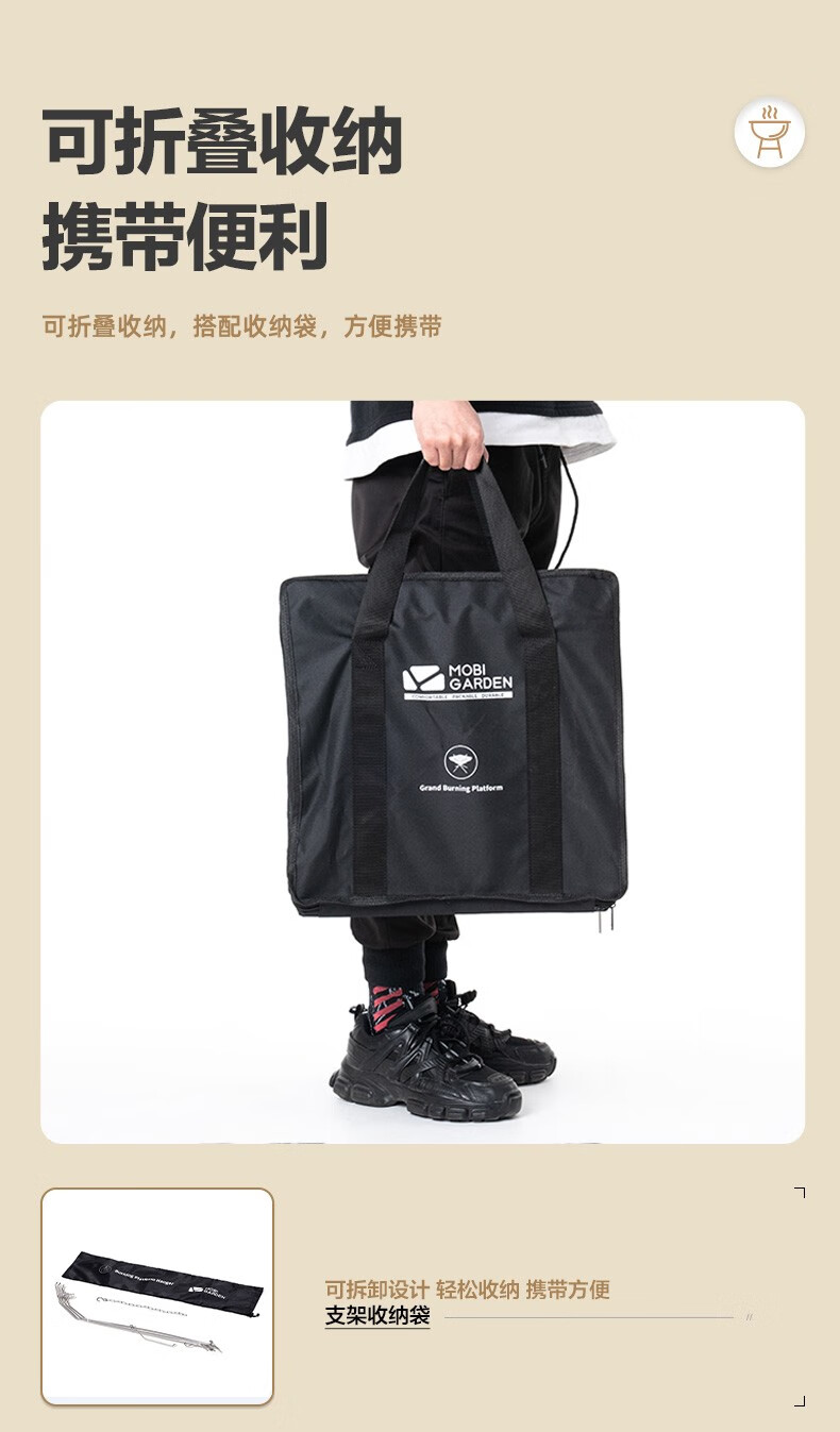牧高笛(MOBIGARDEN)取暖炉 户外露营野炊便携多功能烧柴炉箱式碳火炉燎烈 曜石黑(不含周边配件)