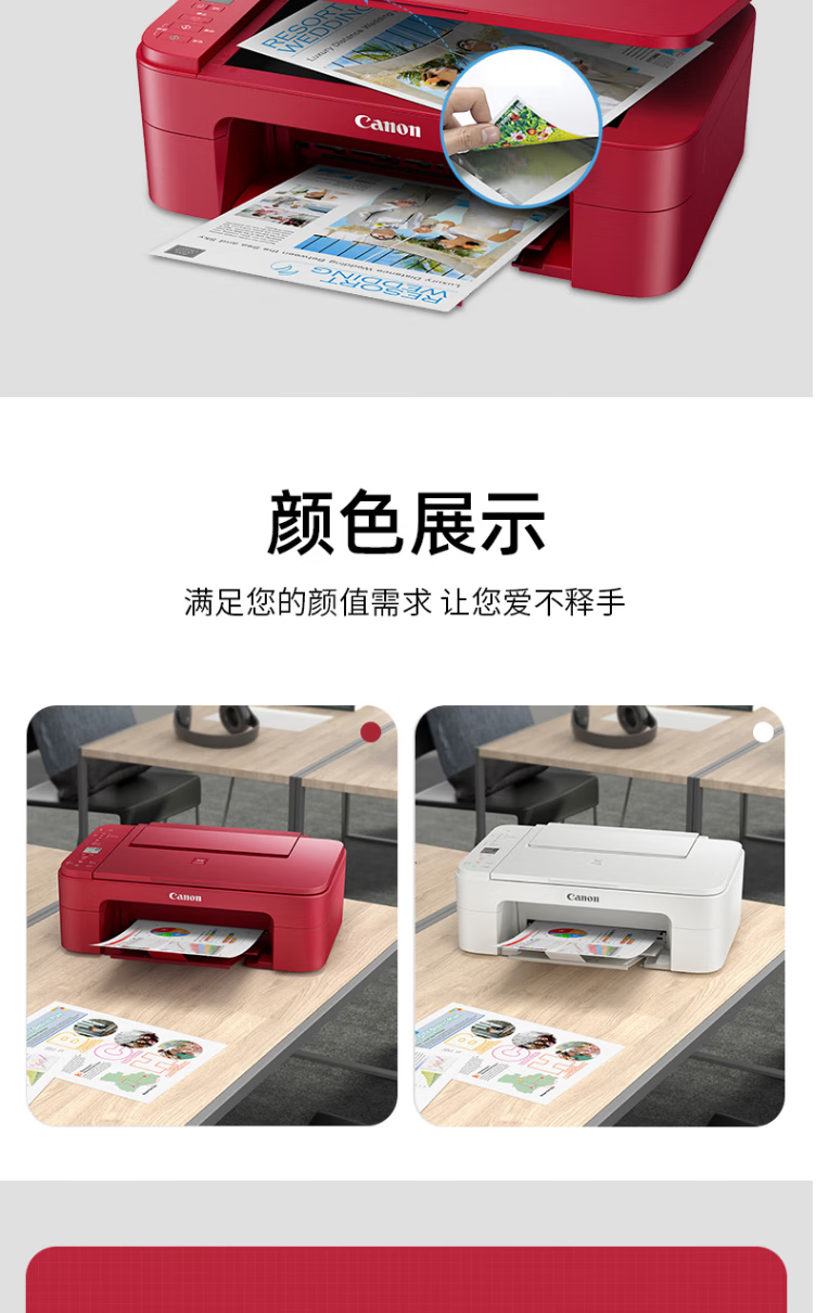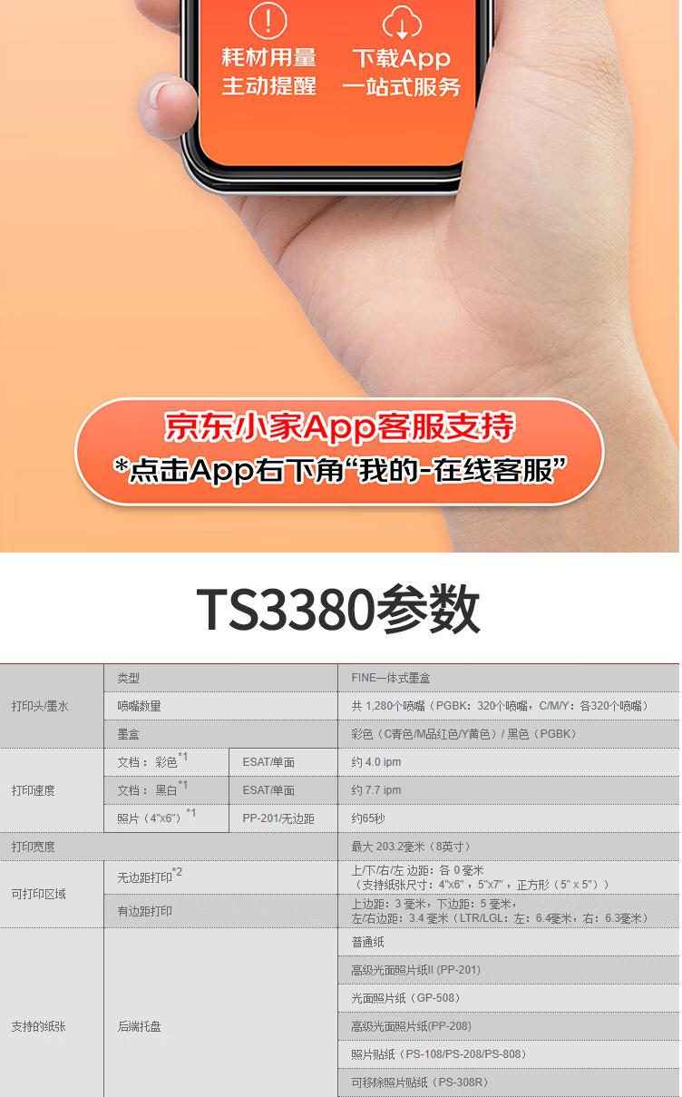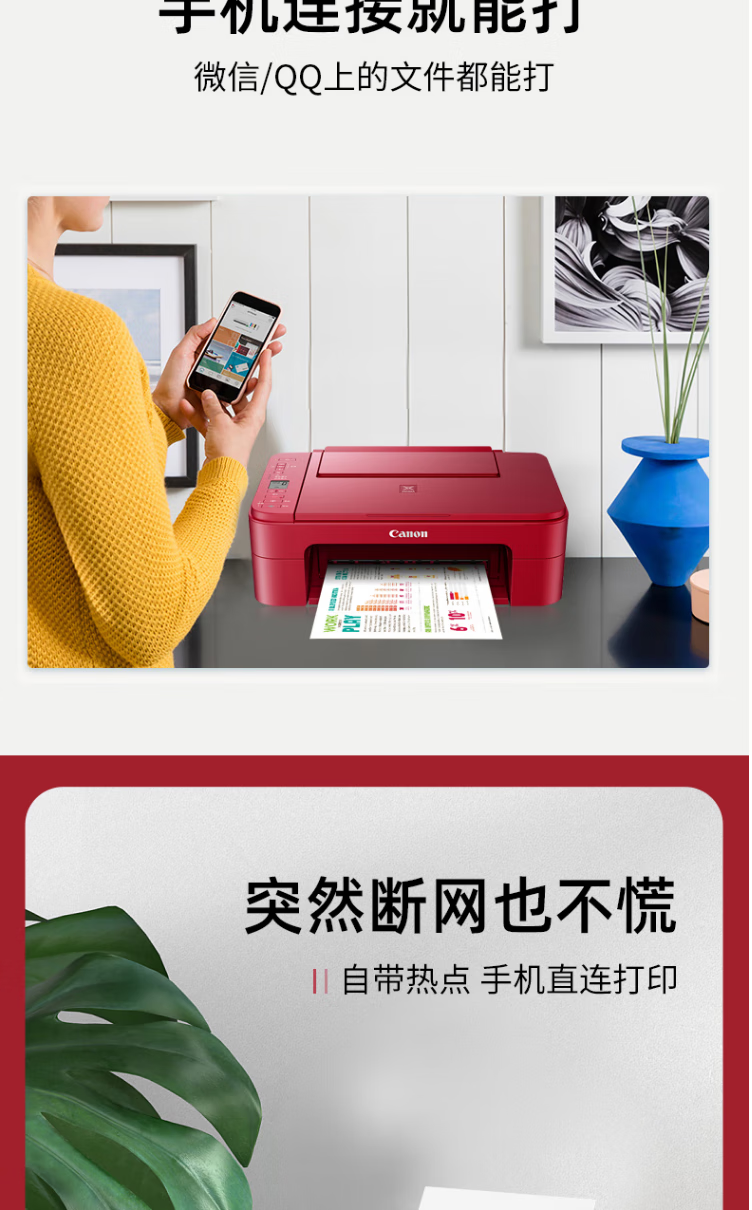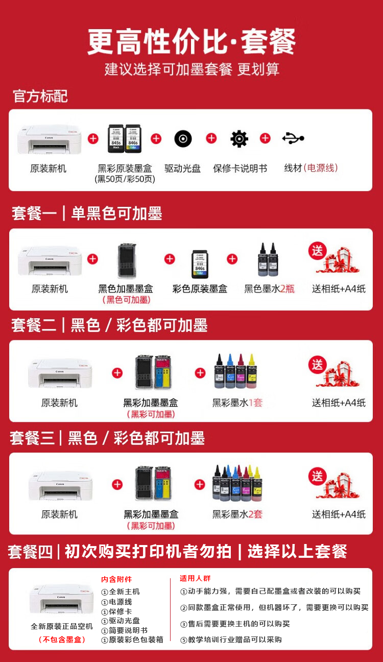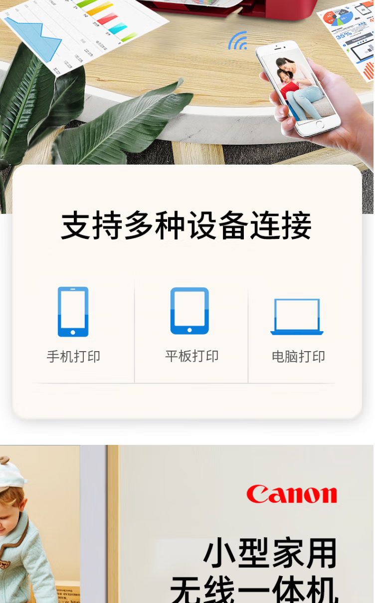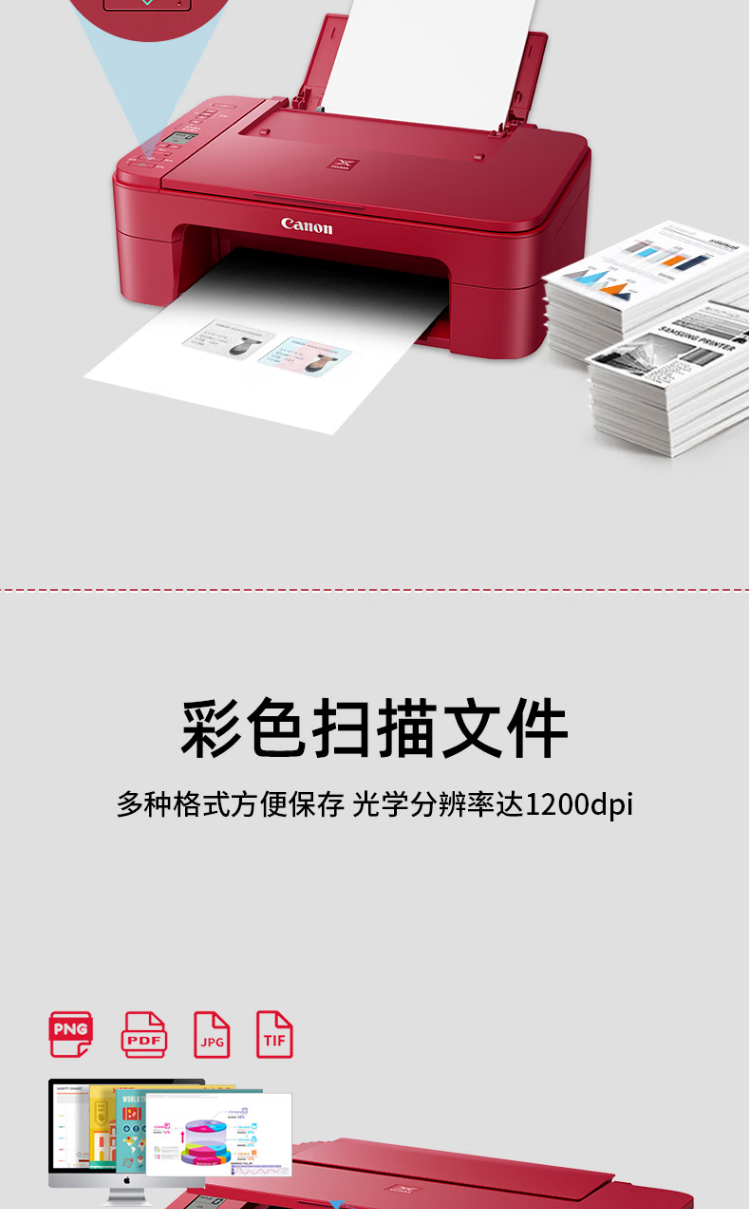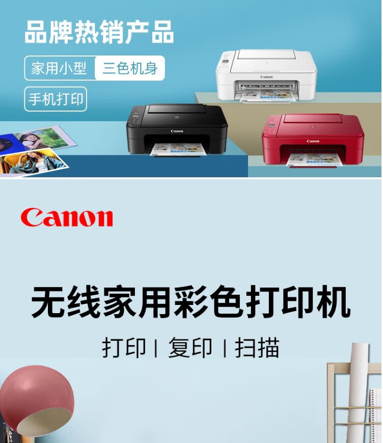 佳能TS3380 学生家用手机无线直连照片远程办公A4彩色打印机 复印 TS3380白色(手机连接+无线远程+电脑) 标配(主机+原装墨盒+线材+驱动+报修卡)