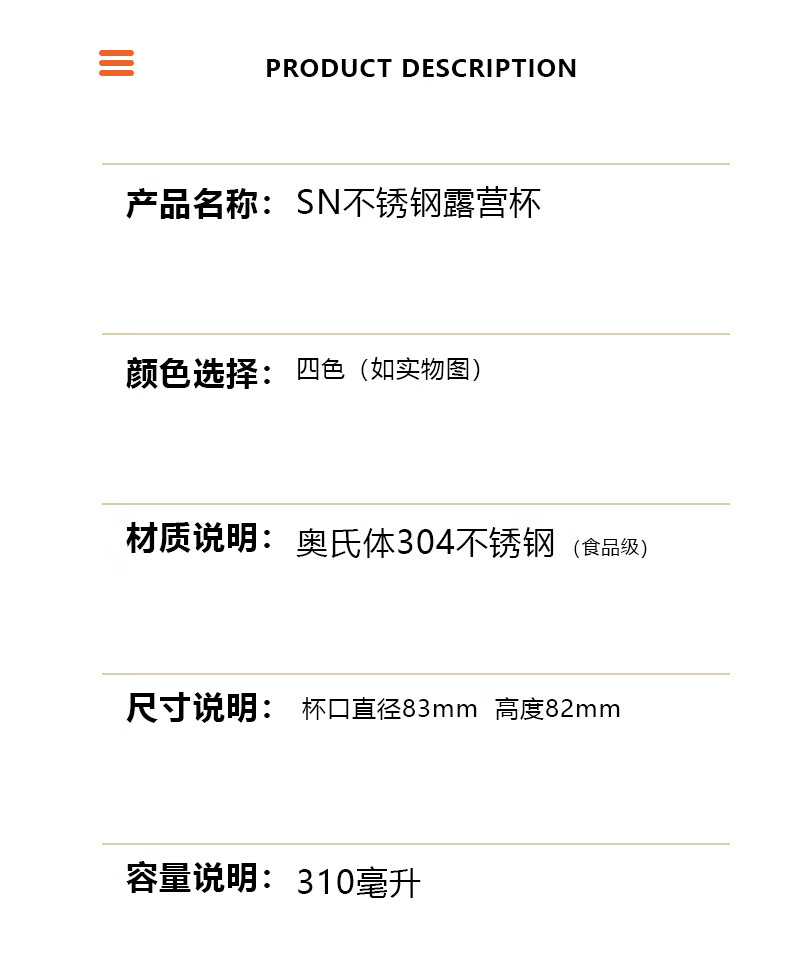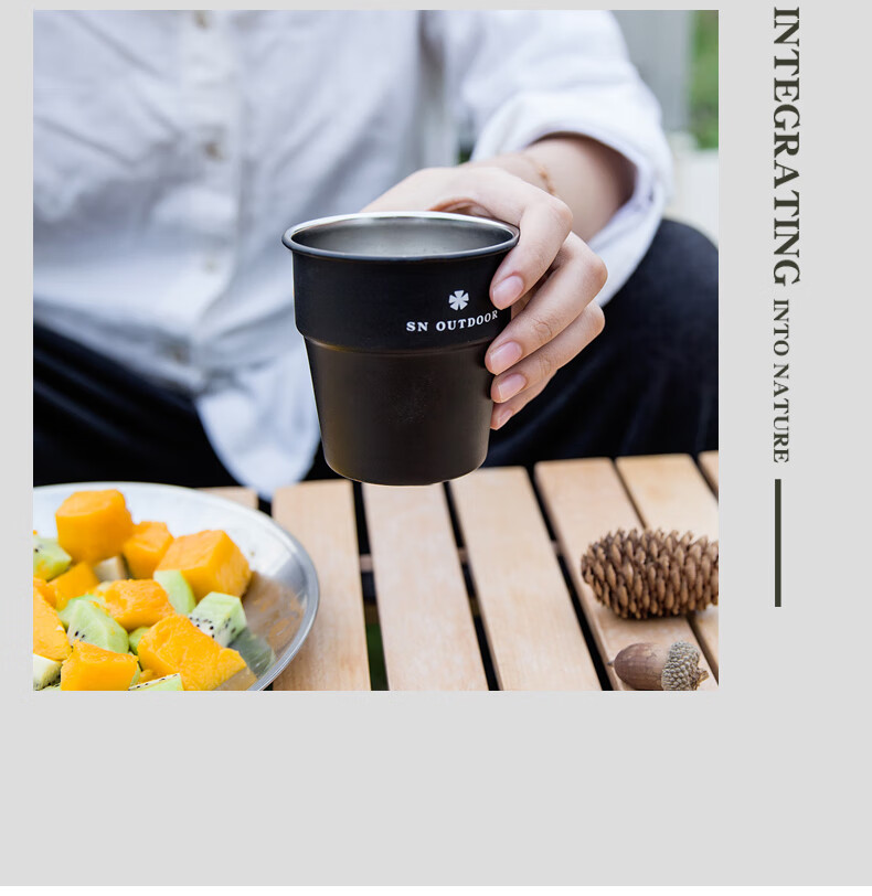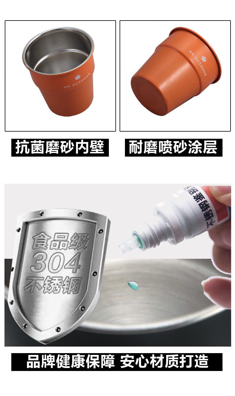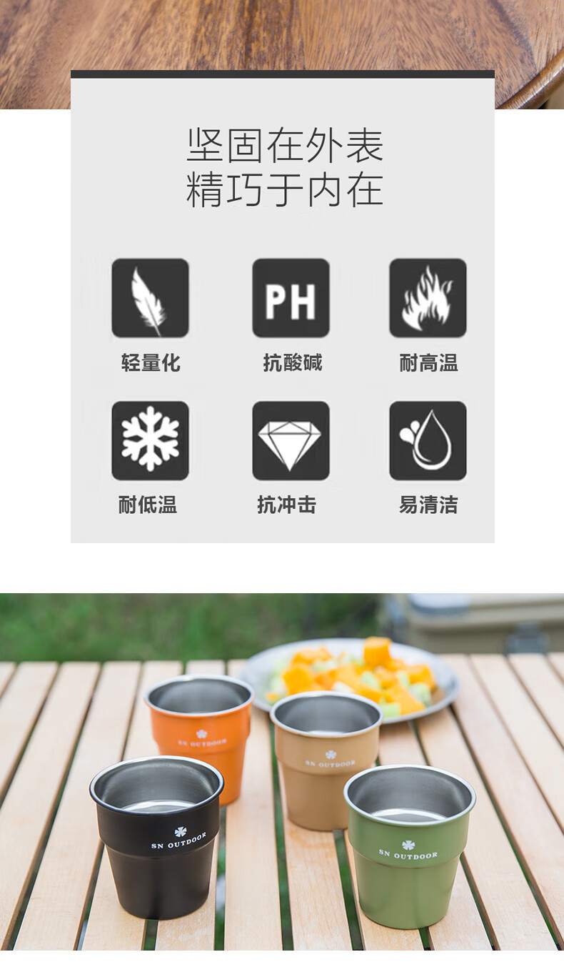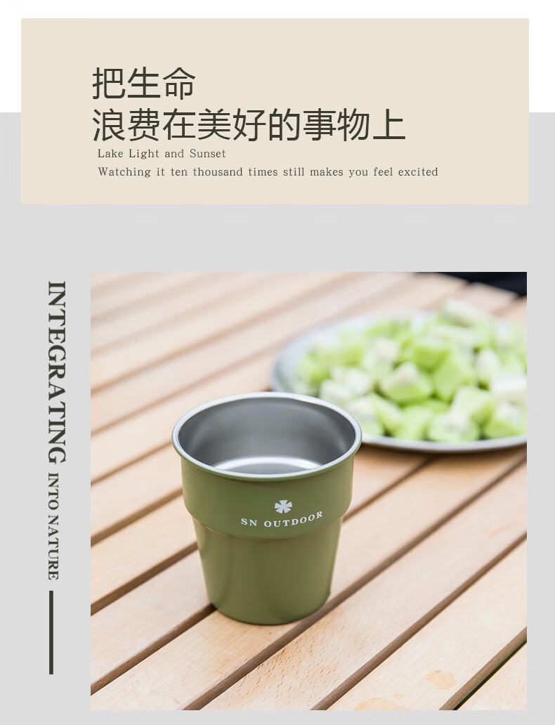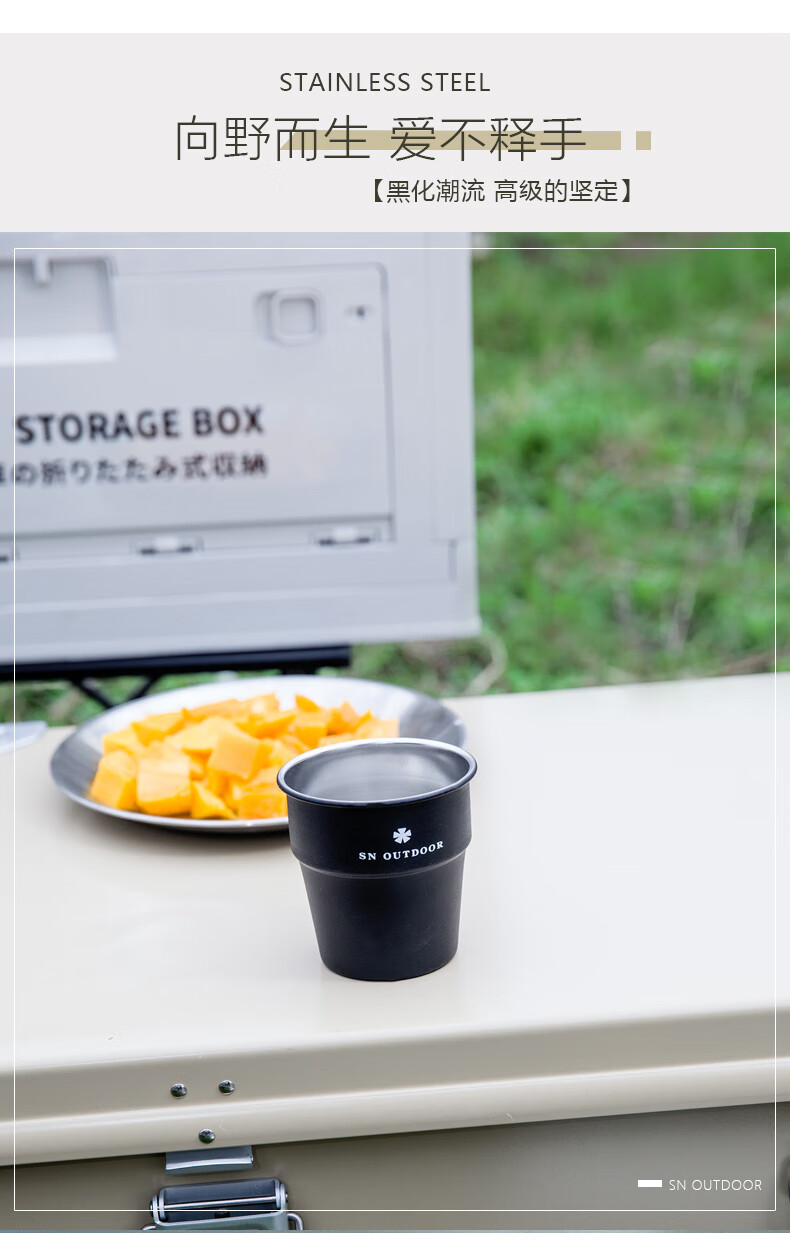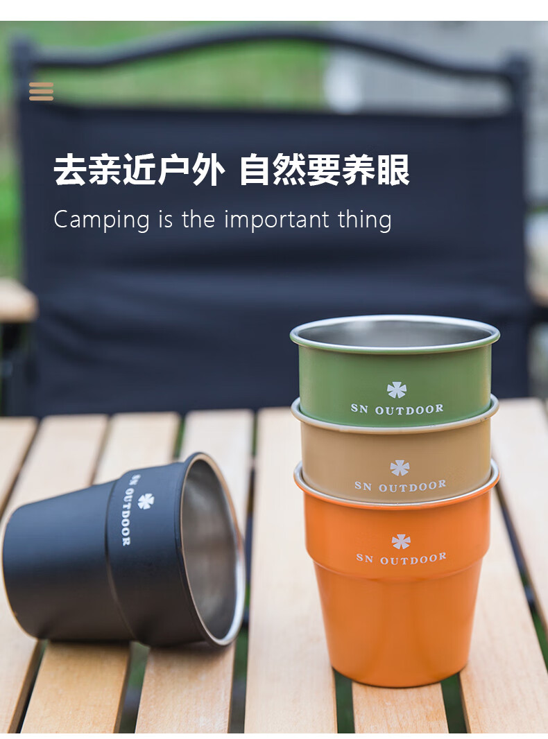 SURVEY NORTH 北部勘察户外304不锈钢水杯子茶杯露营啤酒杯咖啡杯便携式可叠放旅游旅行 单个山系咖