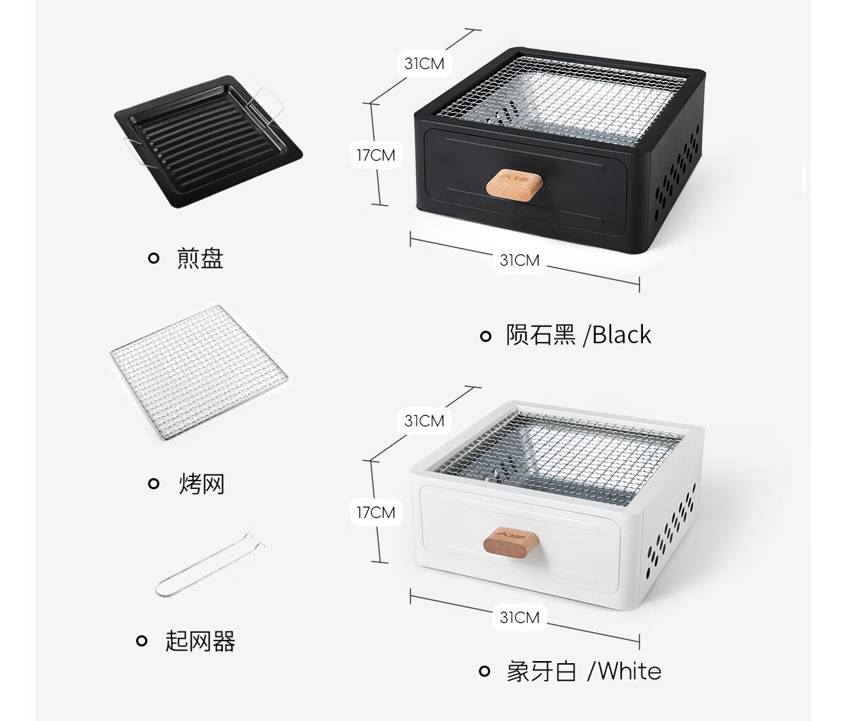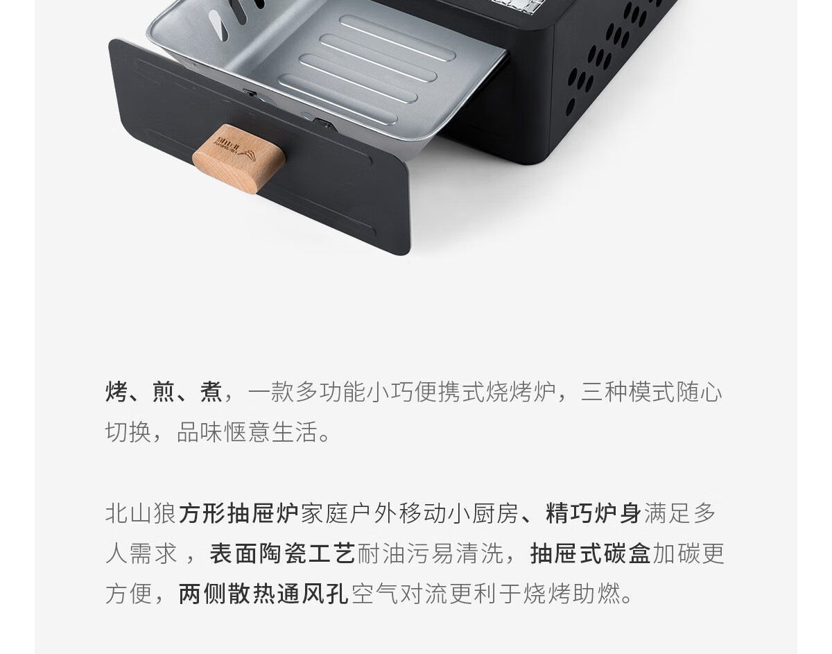 材质略显单薄,但是挺好用的。可以烧烤,可以煎烤,还可以煮火锅。抽屉式的炉芯加炭很方便。