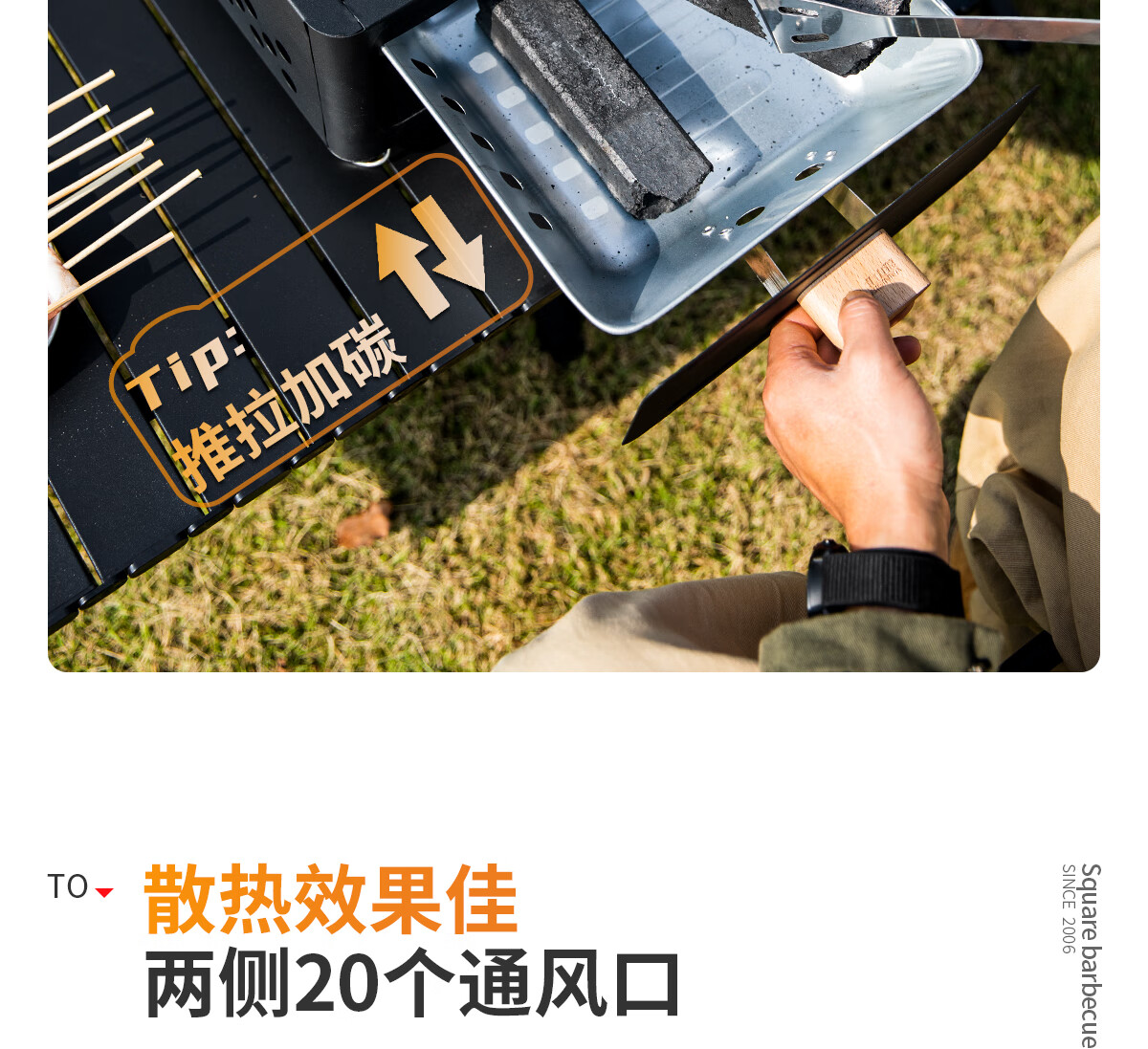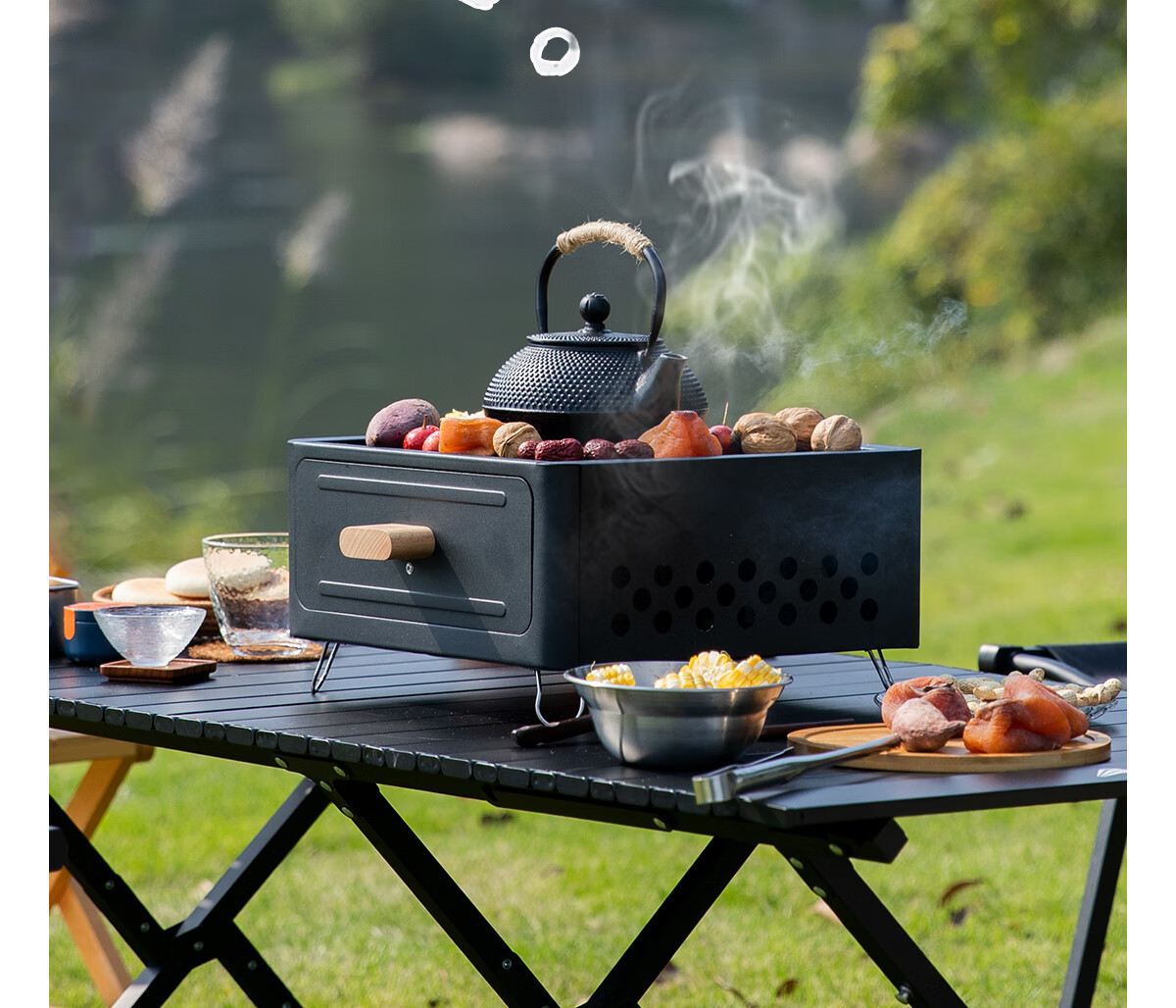 现在的城里人都特别的想追寻那种田野和山里的生活,我们也没能免俗。各种露营装备都买了,又追寻户外围炉煮茶,烤点吃的的感觉,所以又买了这款户外灶具。它的这种设计可以避免加碳时候的麻烦,设计很科学;有进风口,可以让炉火一直很棒。总体来说很不错。