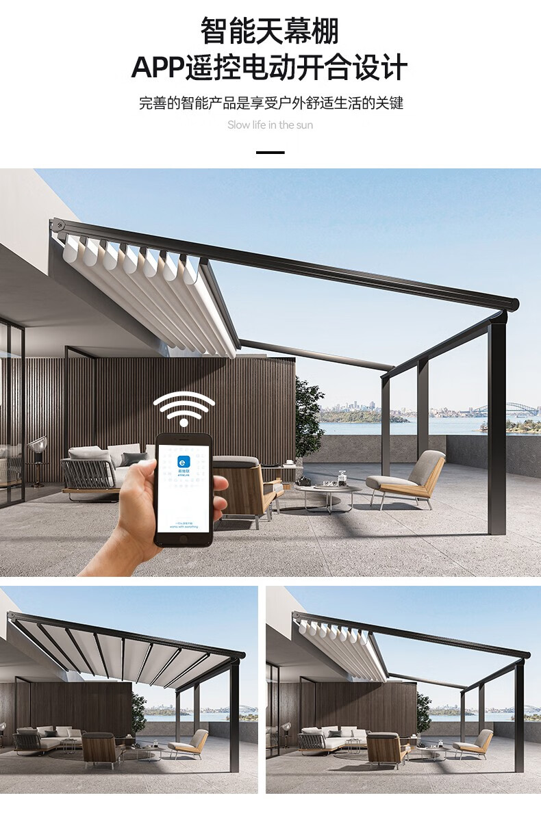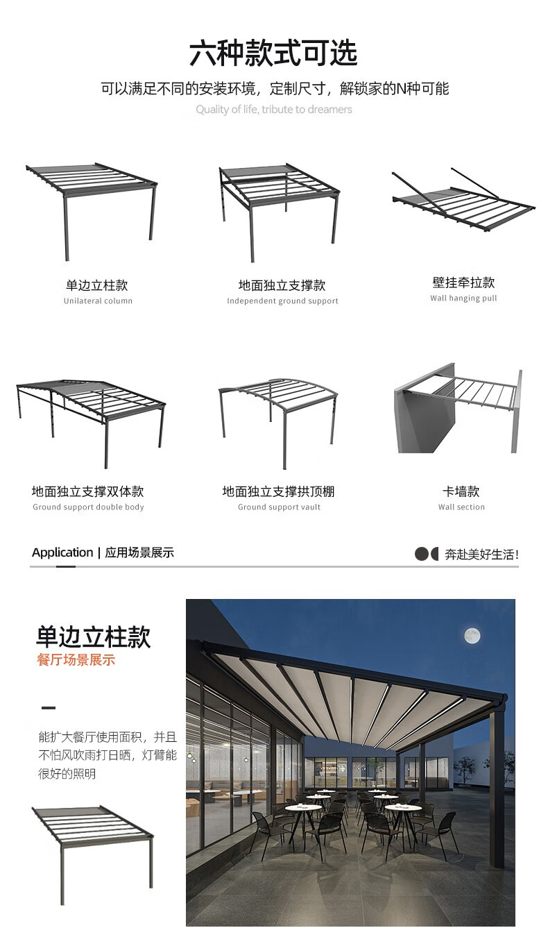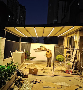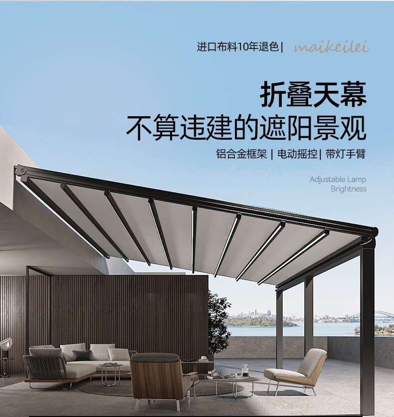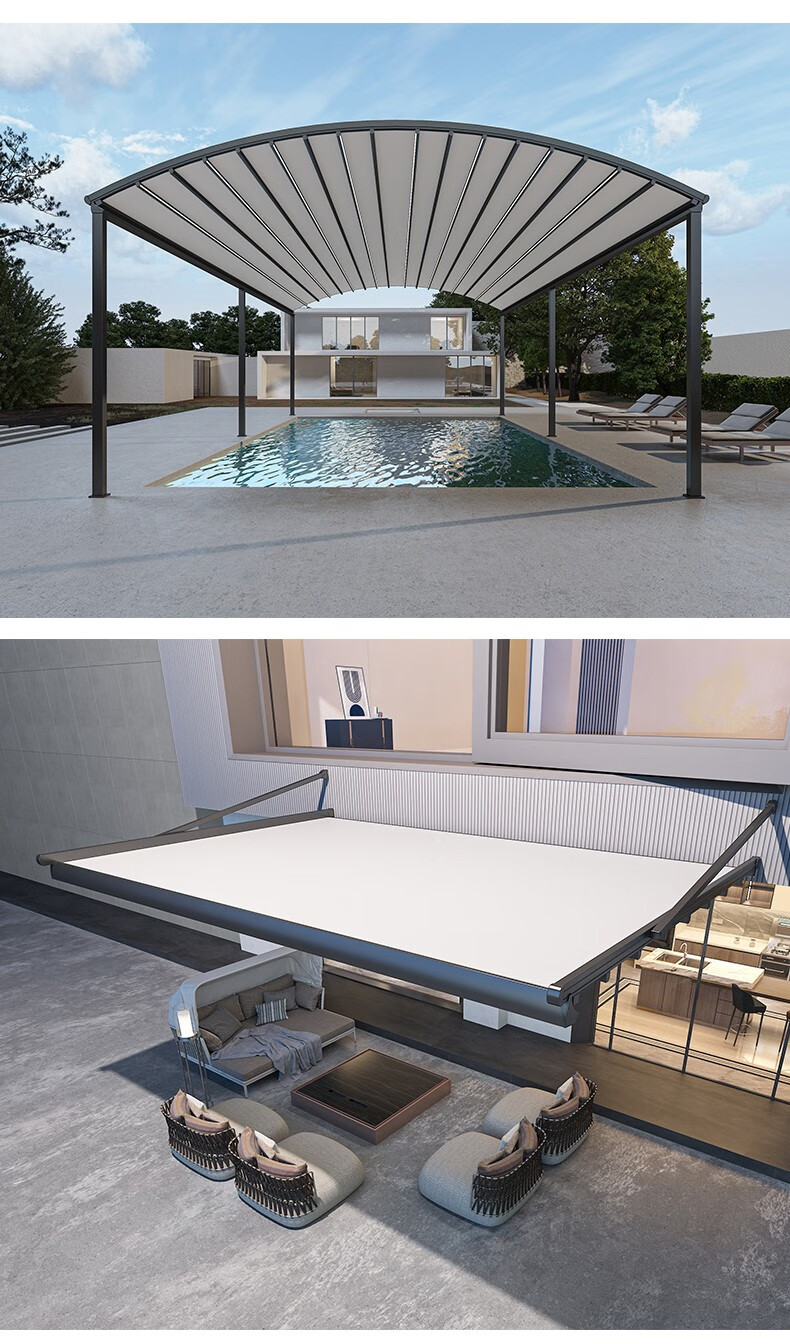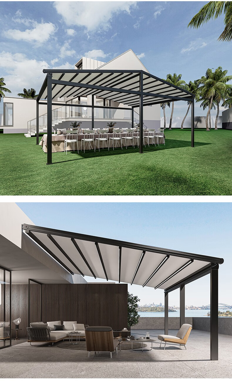 厂家客服热情细心,安装徐师傅专业、经验丰富;让我庭院一方天地,伸缩铝合金天幕开合随心,晴雨皆宜。它以优雅骨架撑起诗意天空,让闲适时光从容流淌。