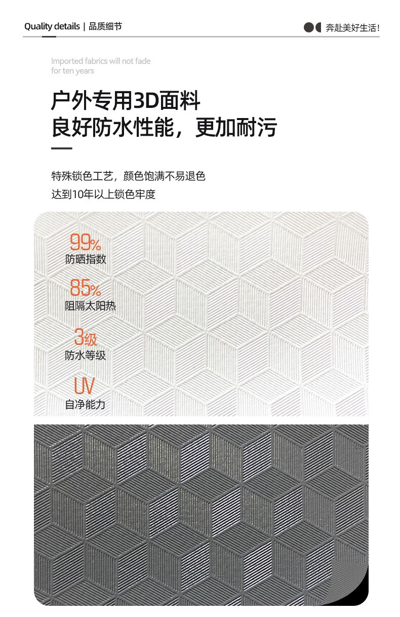 提前半年去了解,做了很多功课最后还是选定这家!咨询客服到上门量尺,再到上门安装,每个环节都很有耐心,这么长时间没下单,依旧百问不厌,这样态度的卖家不会差到哪里去。质量没的说,一分价钱一分货,安装师傅也对五金用料这块表示认可,算是上游水平,谦虚点用个一二十年不会有什么问题,,外观颜色我是跟着阳台风格去定制,最近天热,撑开平台瞬间凉快了不少,待下面也很有安全感,如果还不知如何选择的话,这款真的推荐!