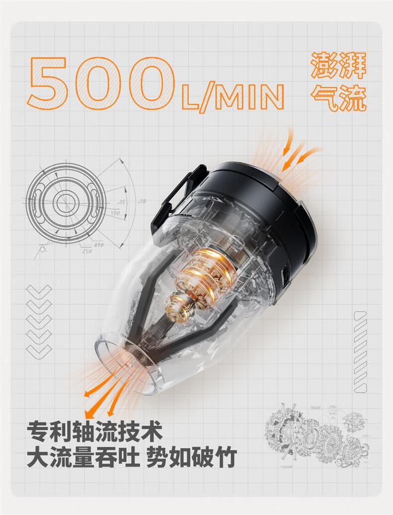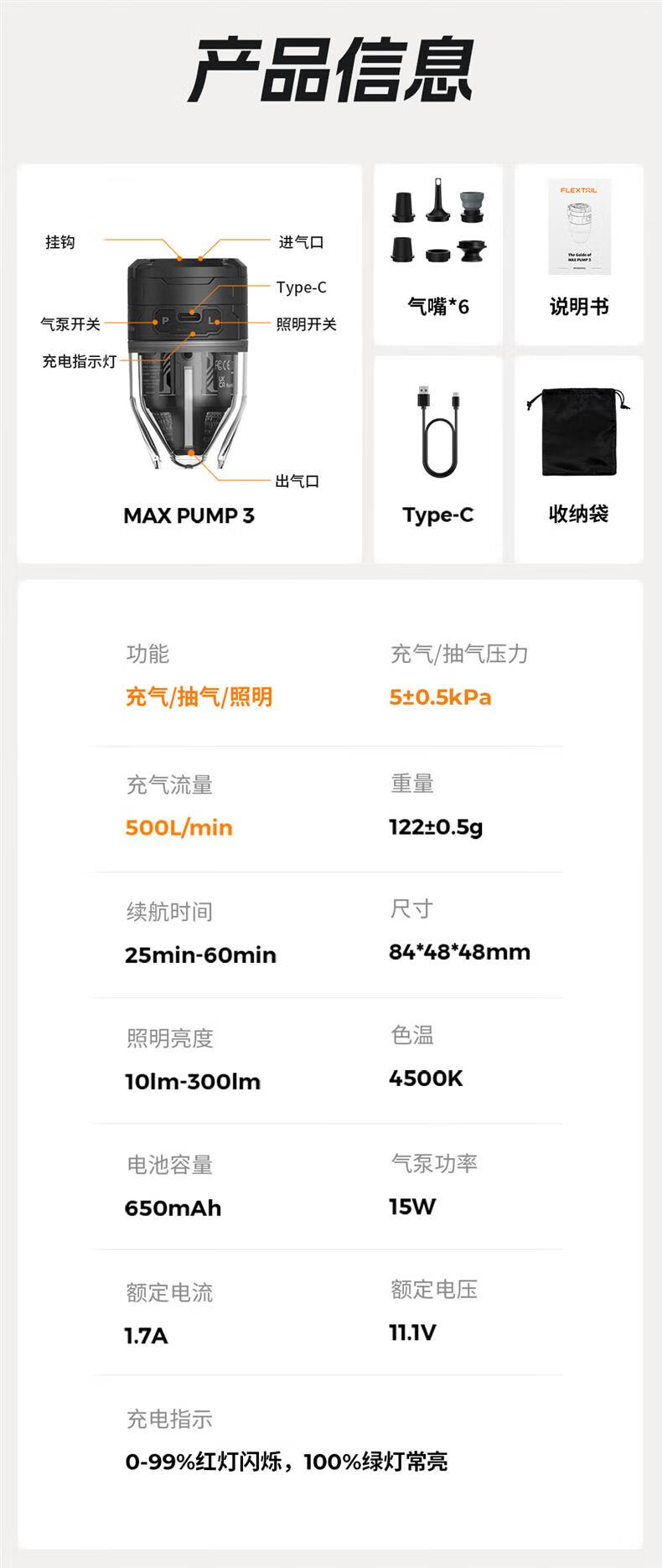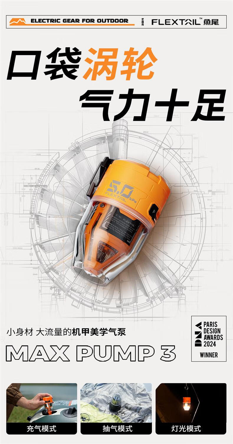 FLEXTAILGEAR鱼尾户外无线充气泵露营灯气垫沙发便携式抽气泵泳圈电动打气泵 【爆款橙色】MP3赛博泵