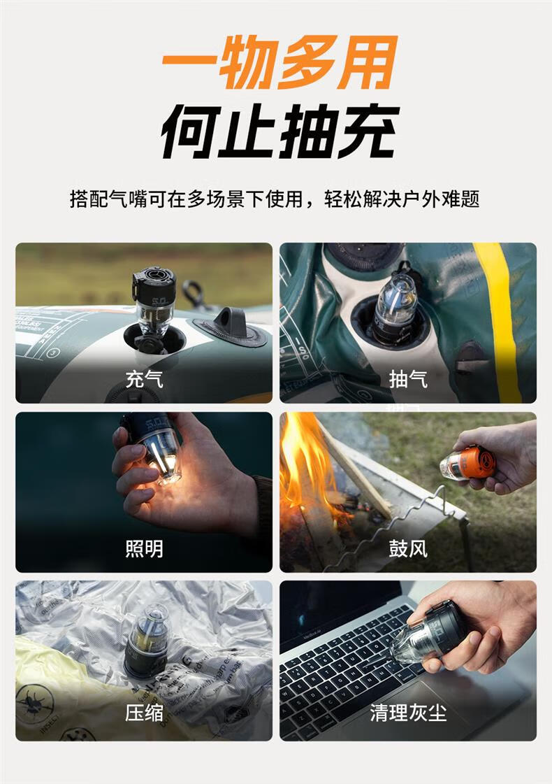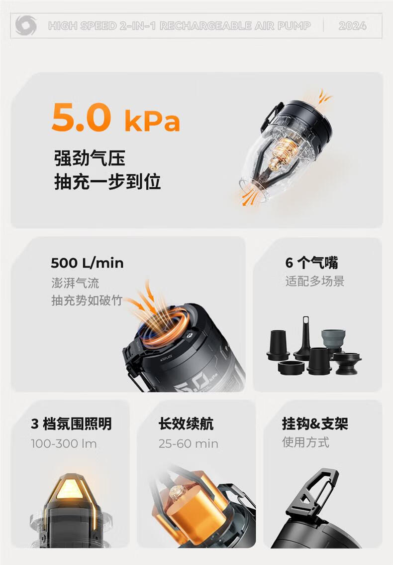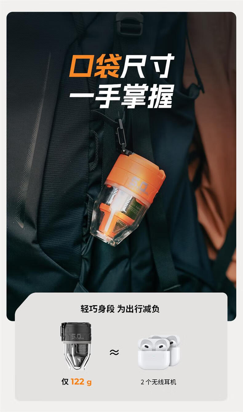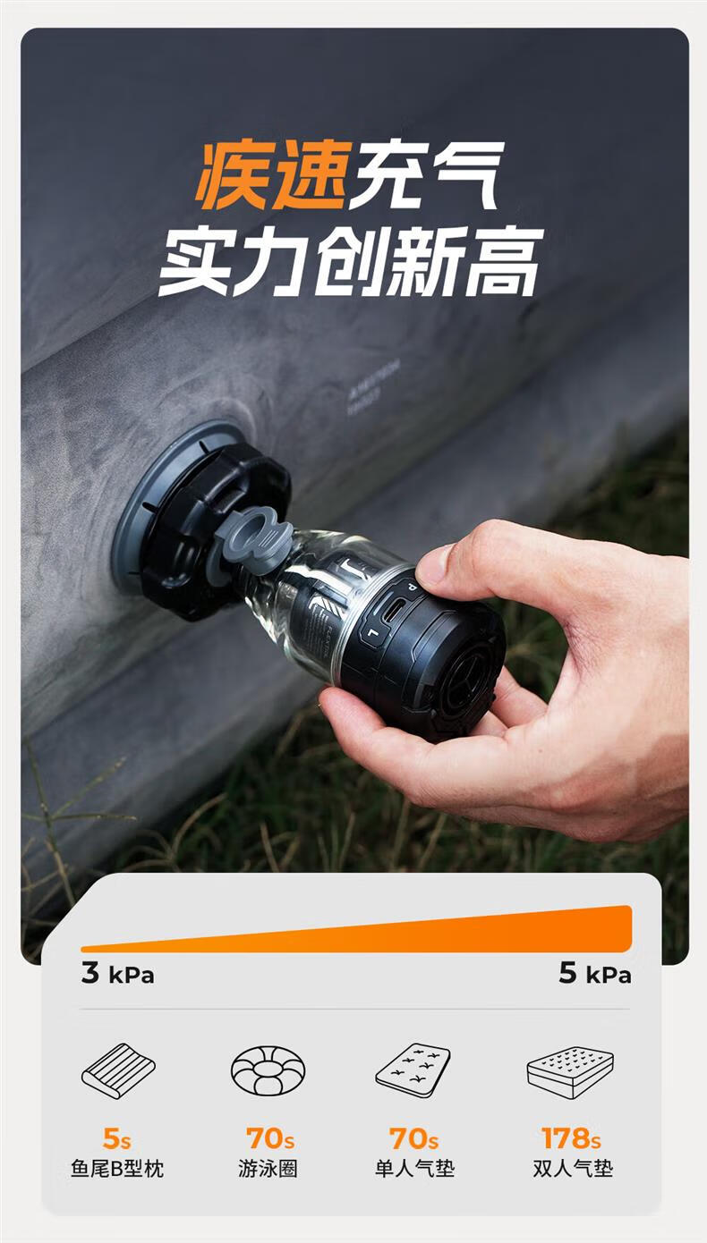 颜值高构思巧,外罩可拆卸清洁或diy夹一些各种颜色糖纸当氛围灯用。对我来说最重要可40秒充满thermarest睡垫,有 winglock充气阀门接口,原来一直用原厂气泵十分钟充百分之七十左右还要手动补气急死个人。强烈推荐!!!