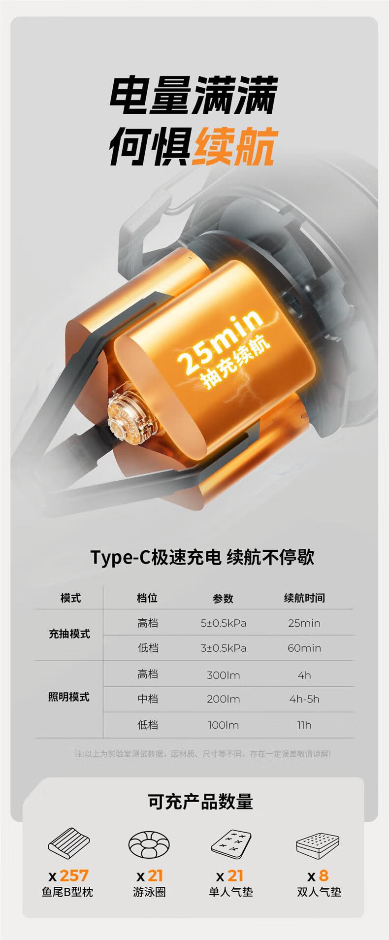 店家很靠谱,这个泵小巧轻便,动力强,续航也强,我给床垫充气完全没问题,大家放心买,好评